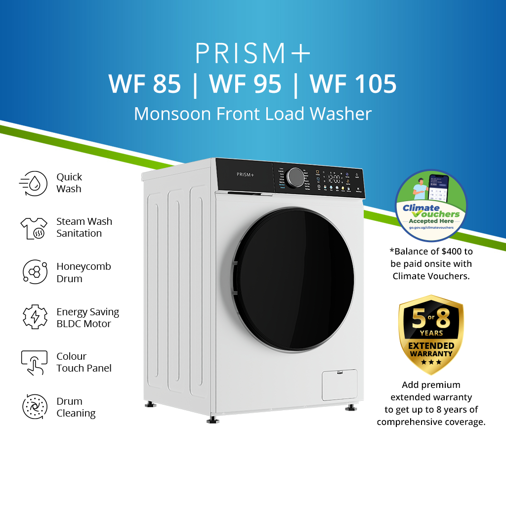 PRISM+ Monsoon Washer WF 85 / WF 95 / WF 105 | Front Load Washer 8.5kg / 9.5kg/ 10.5kg