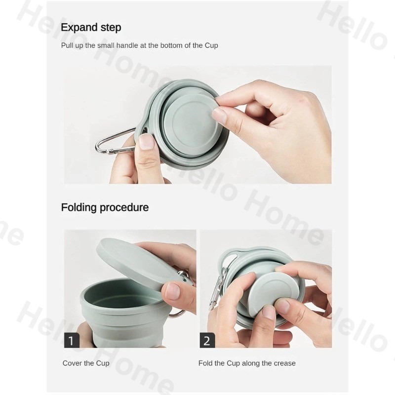 200ML Silicone Folding Water Cup with Hook Travel Outdoor Collapsible Cup Coffee Tea Mug Toothbrush Cup