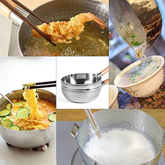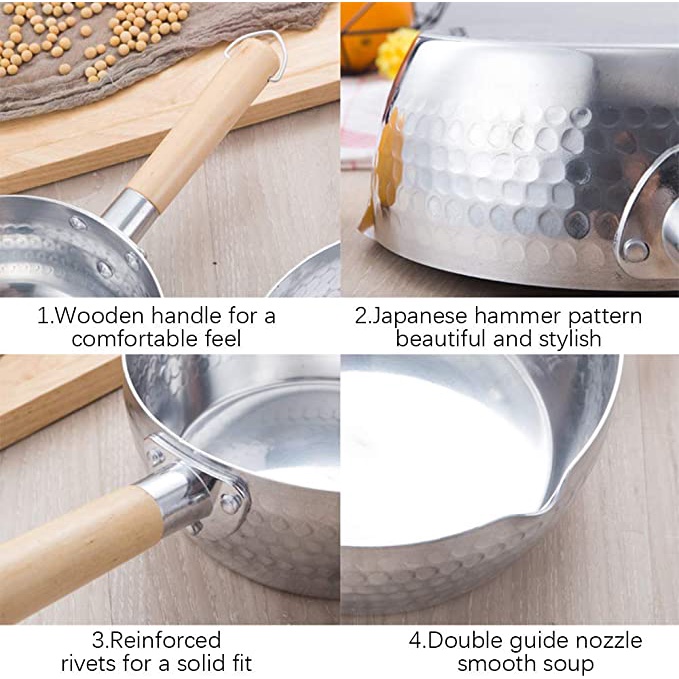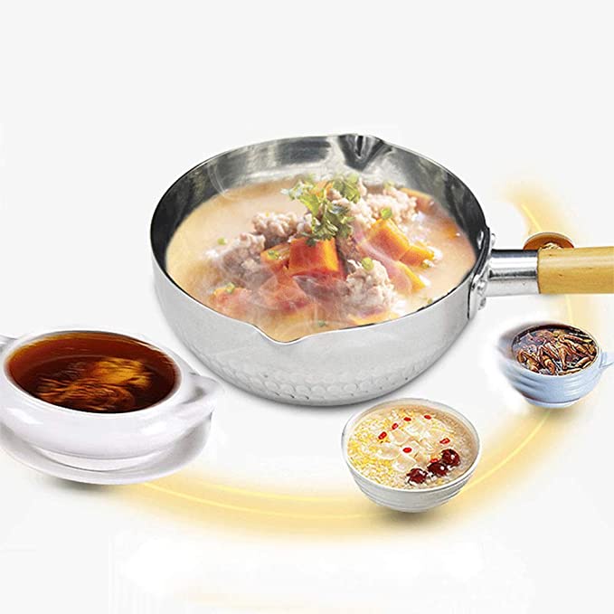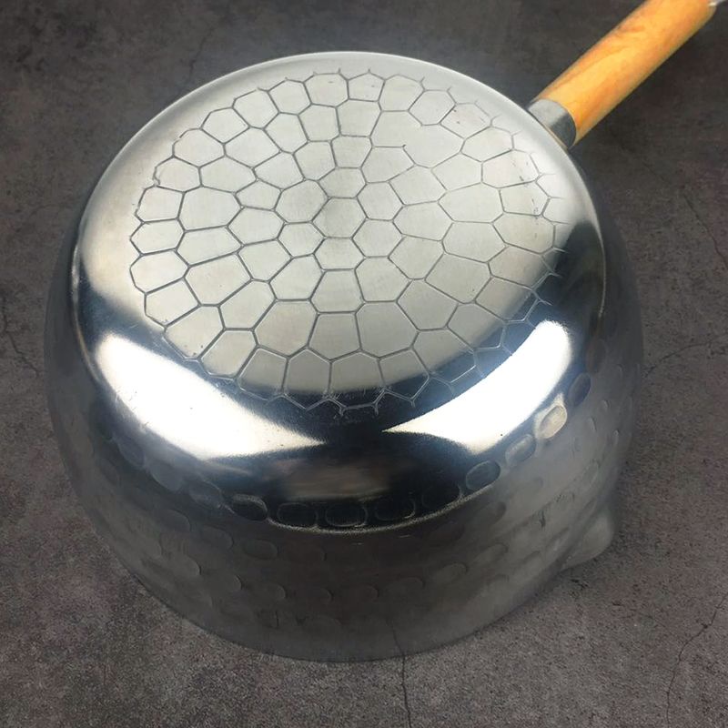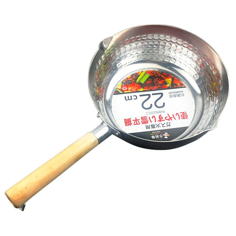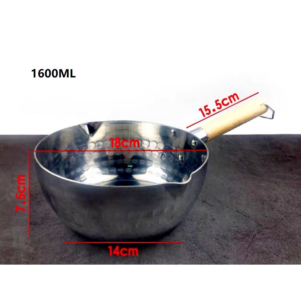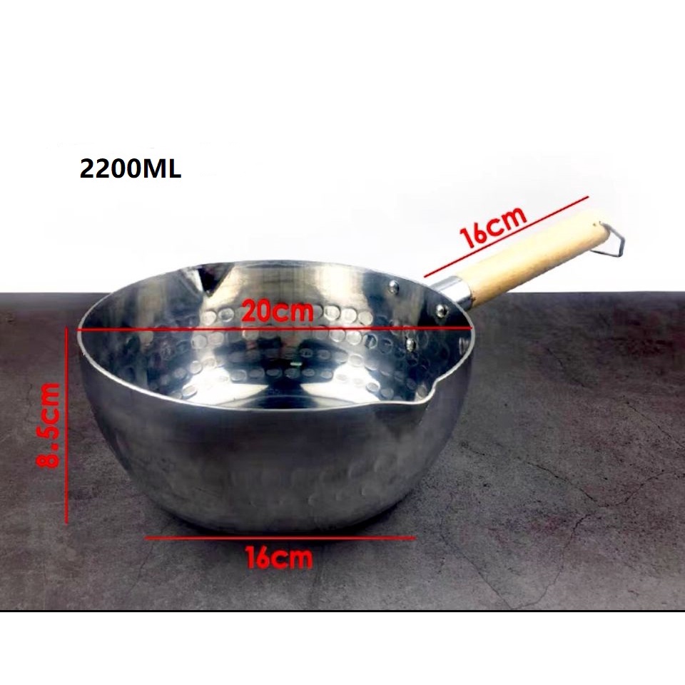 Home Essential Japanese Snow Pan Yukihira Thick & Premium Aluminium Sauce / Milk Pot With Pour Spout & Wooden Handle