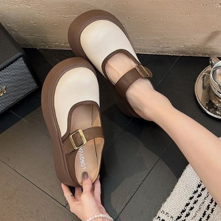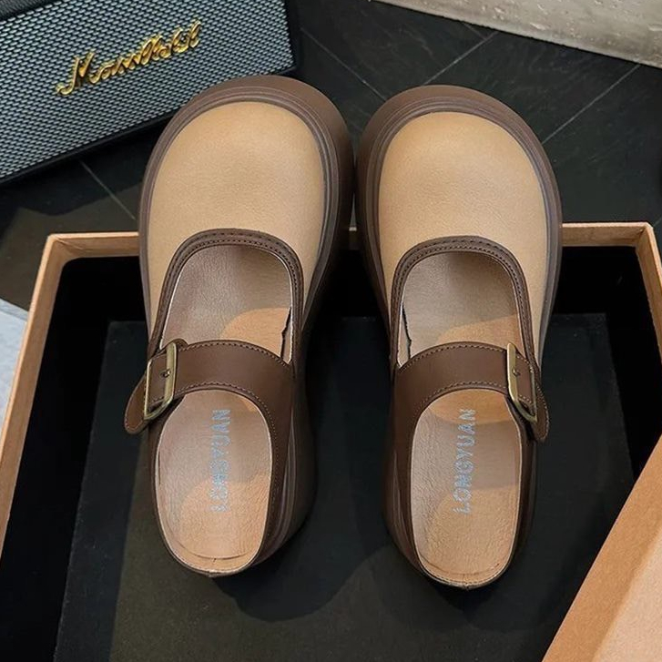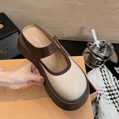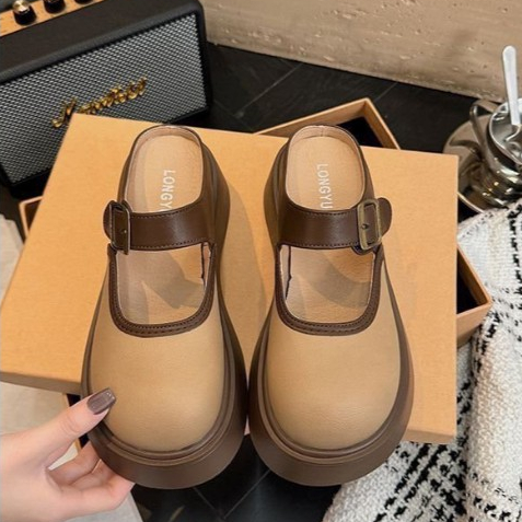 Open-Toe Slip-On Shoes Vintage Style Big Toe With Thick Soles 3 Cm High Heels Pvc Rubber G200 by lukmee716