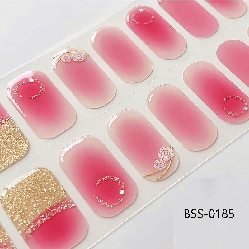 16/20Pcs Semi-cured Gel Nail Stickers Summer Rainbow Korea Phototherapy Gel Nail Strips DIY UV Gel Nail Wraps