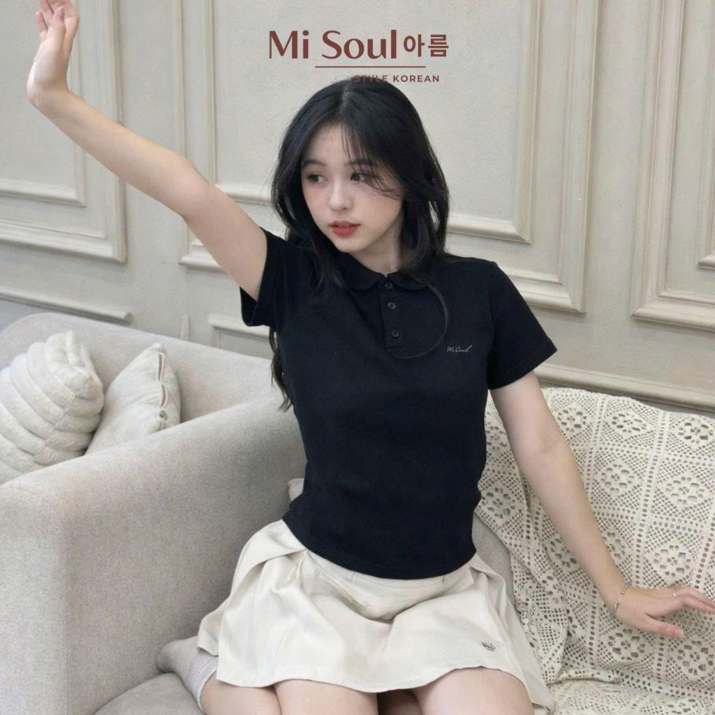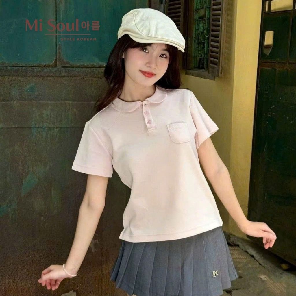 Basic plain Misoul embroidered lotus collar cotton polo shirt, stylized polo shirt with chest pocket Misoul 547