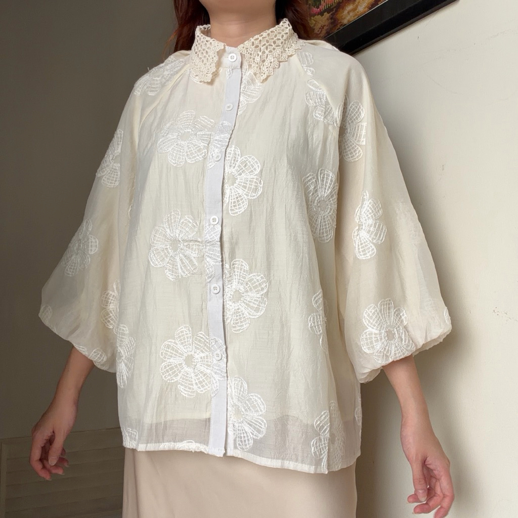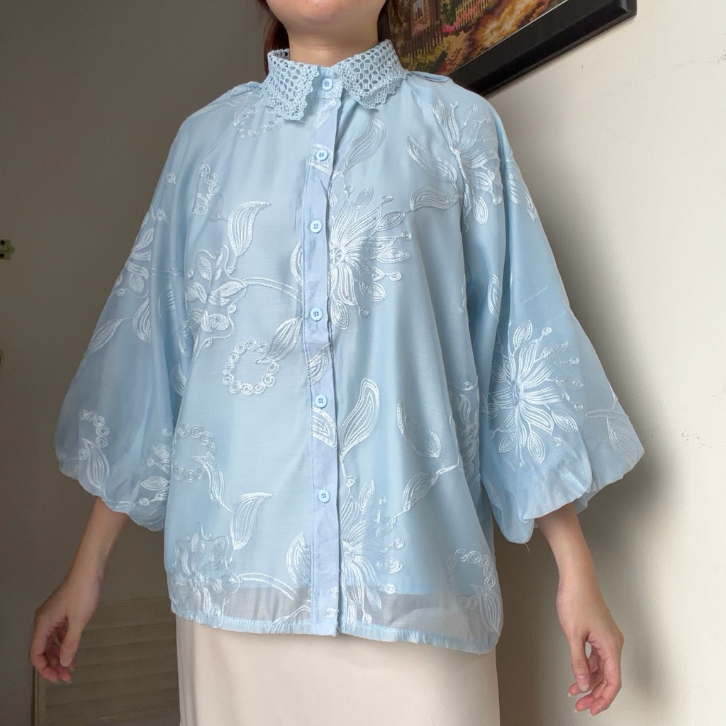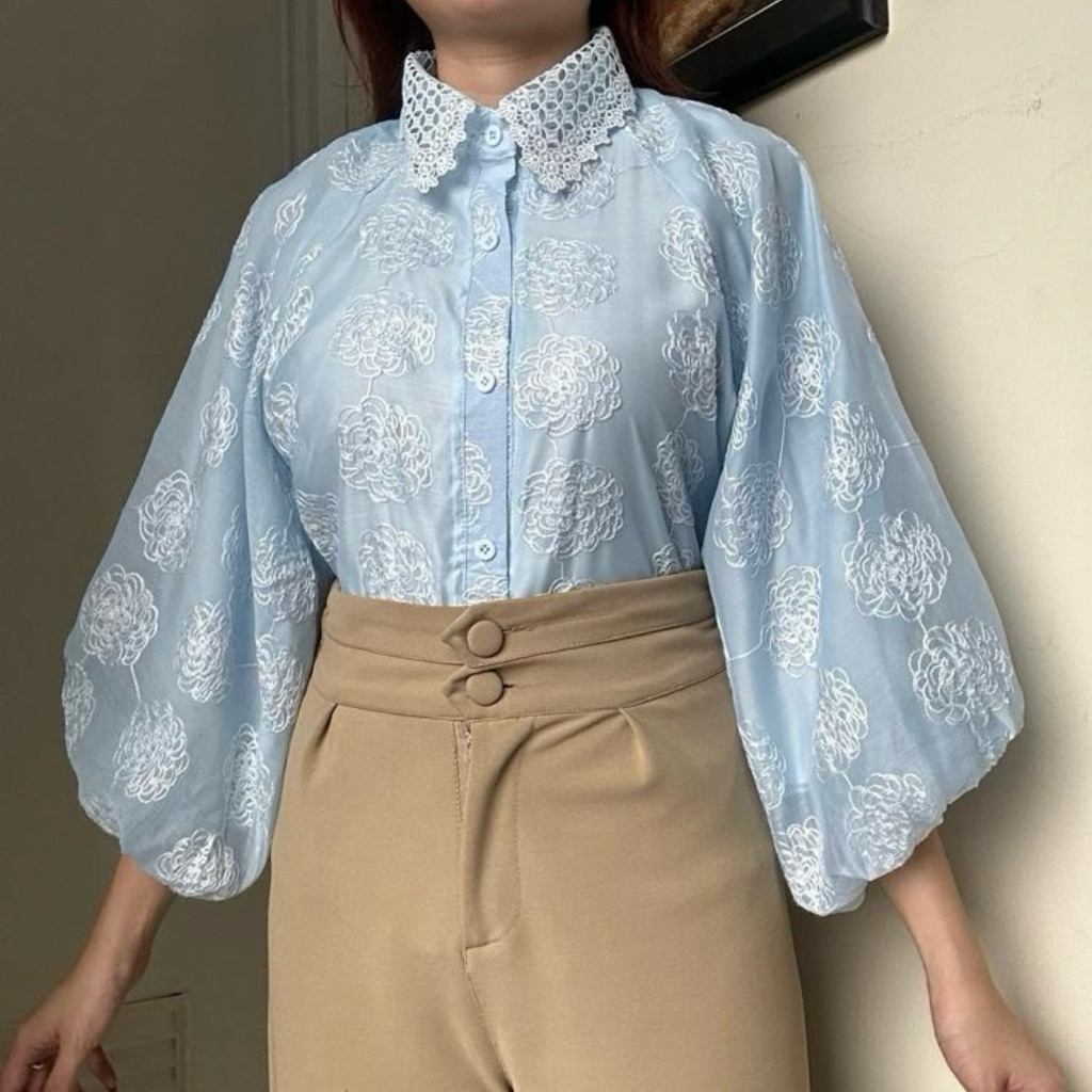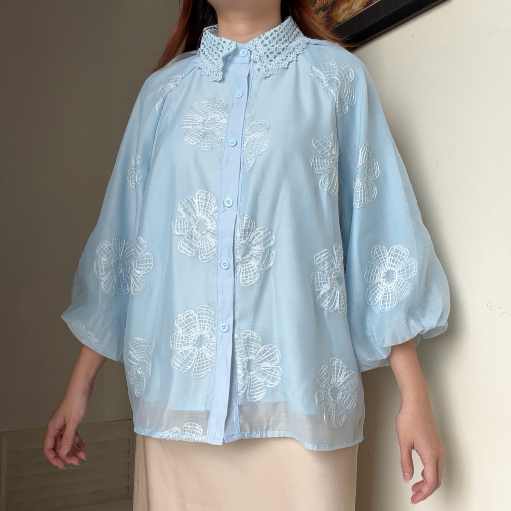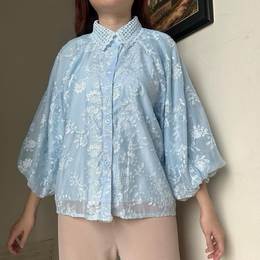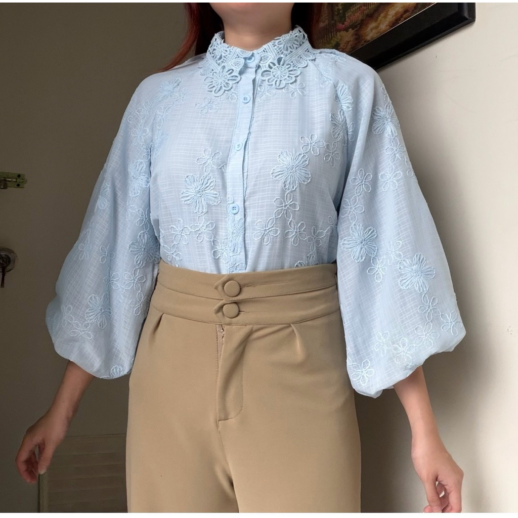 KEMEJA Liliana Top blouse shirt women's work organdi embroidery korean style by Biel the Label
