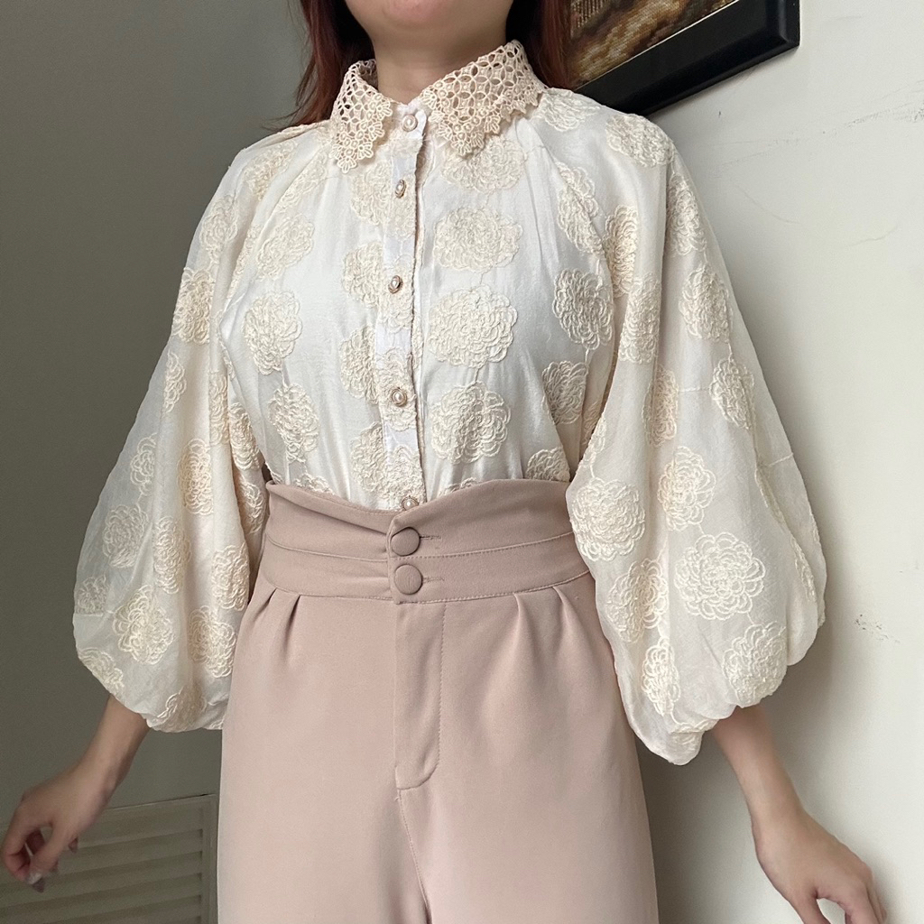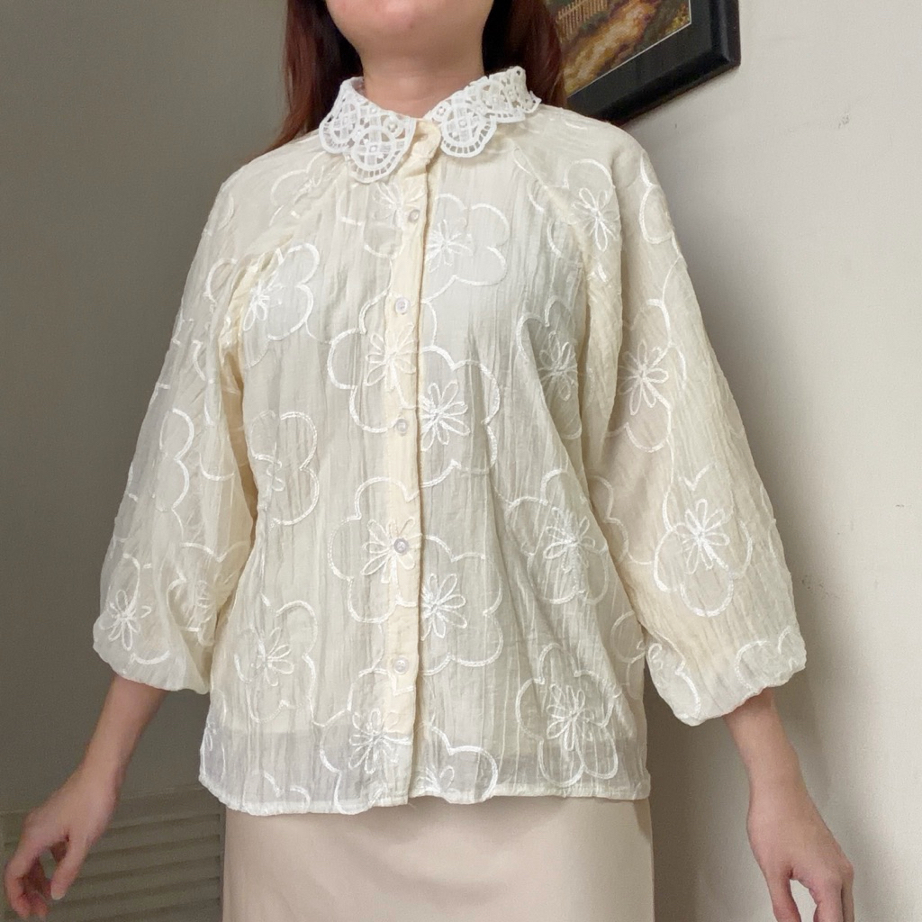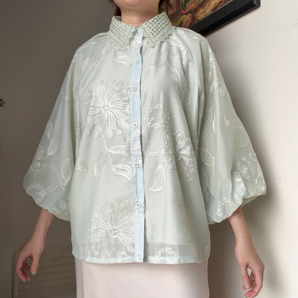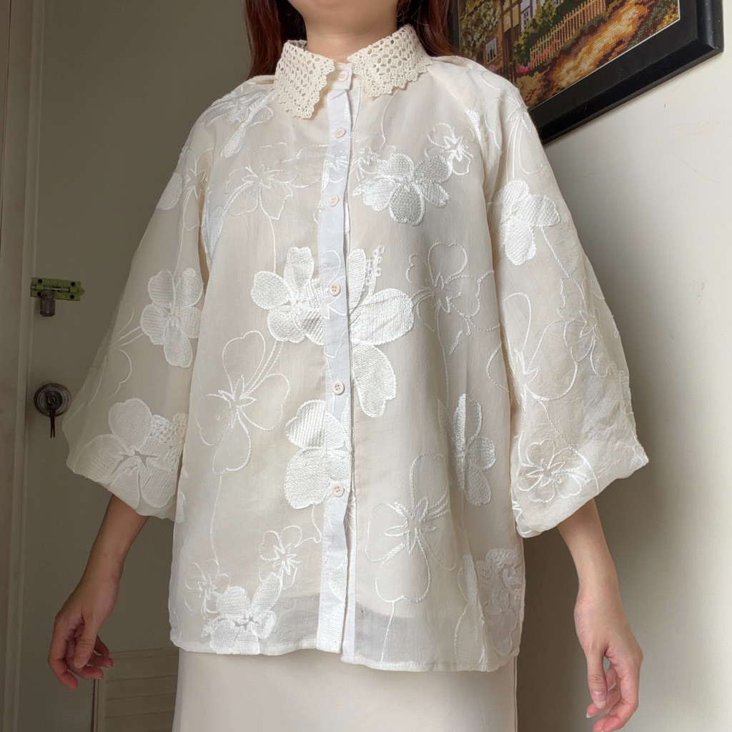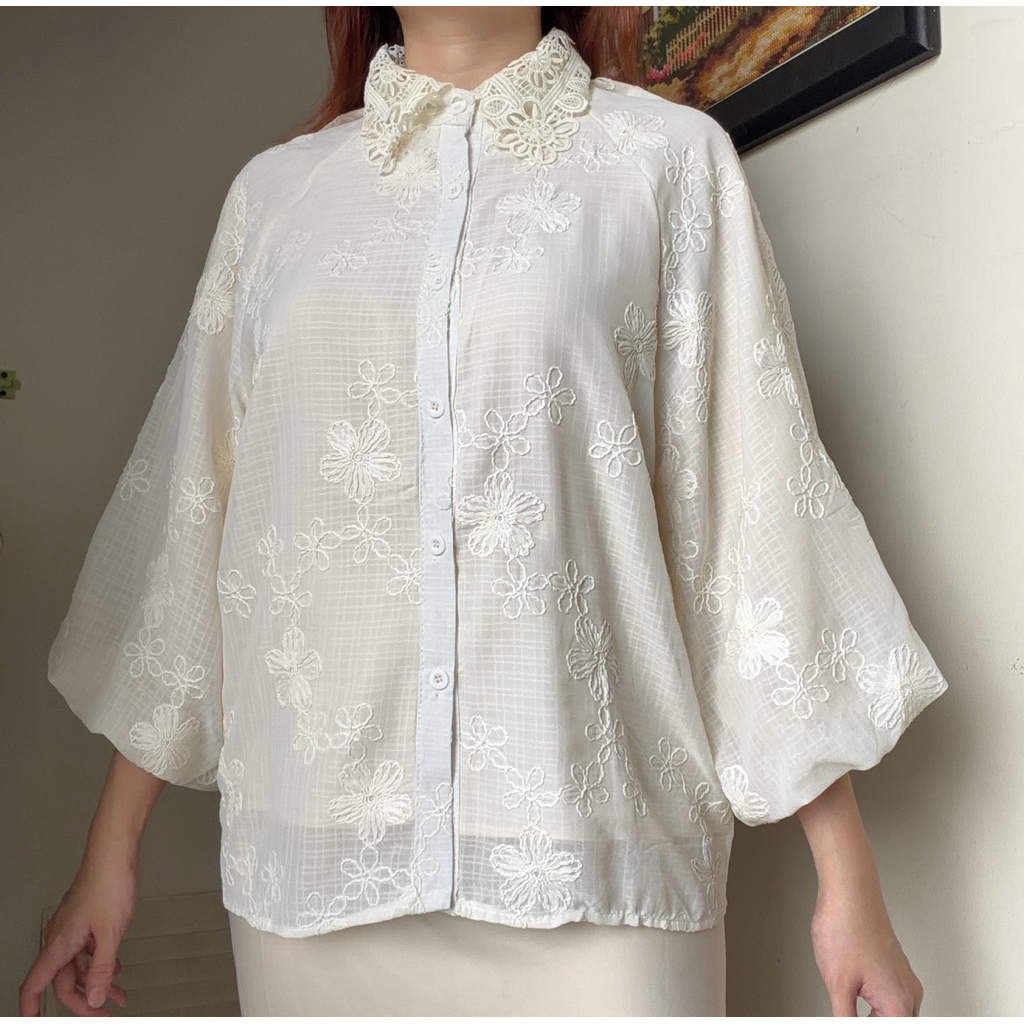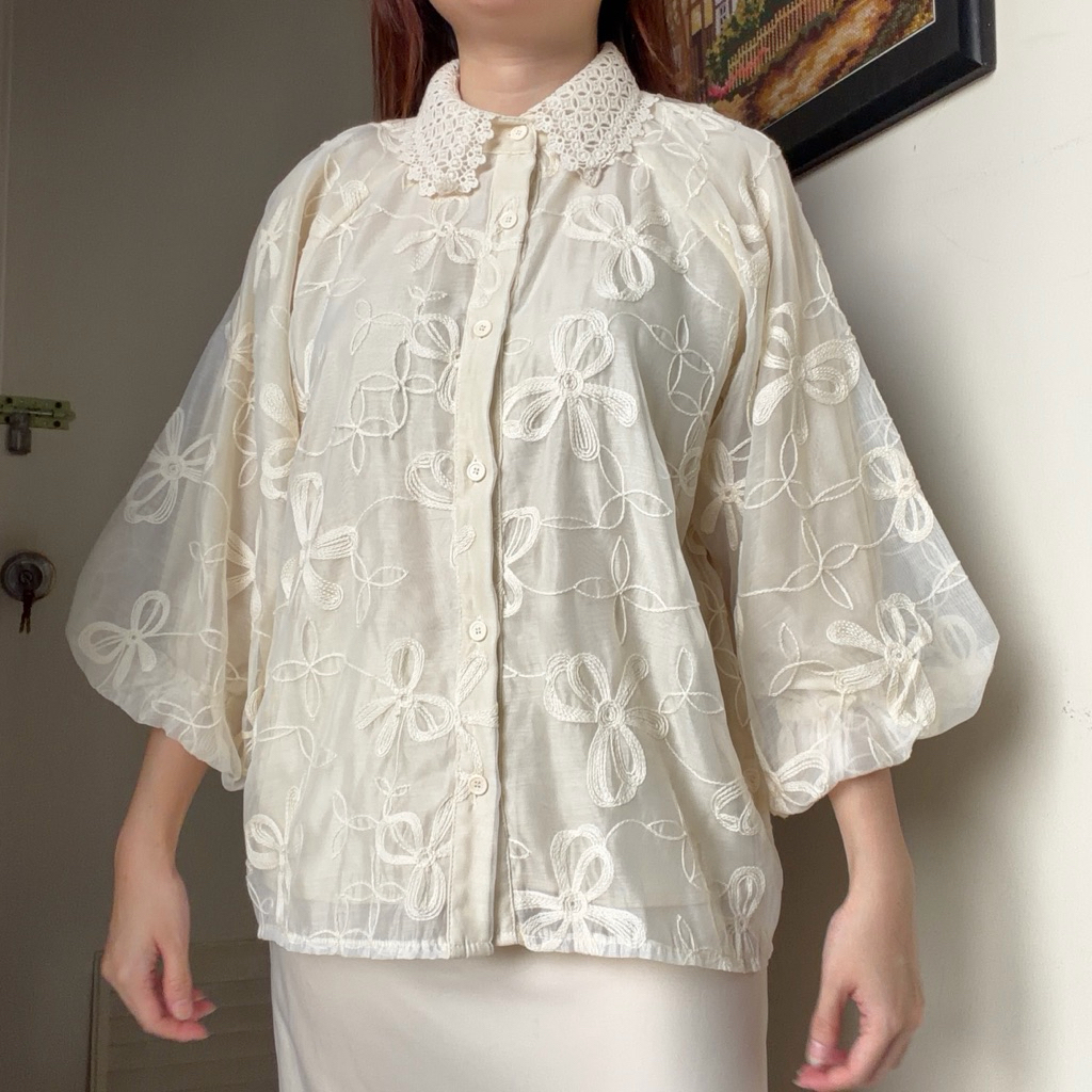 KEMEJA Liliana Top blouse shirt women's work organdi embroidery korean style by Biel the Label