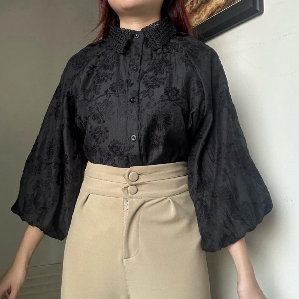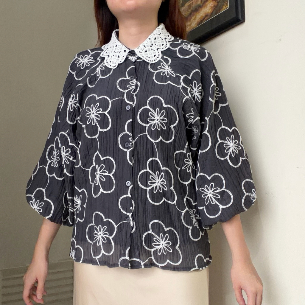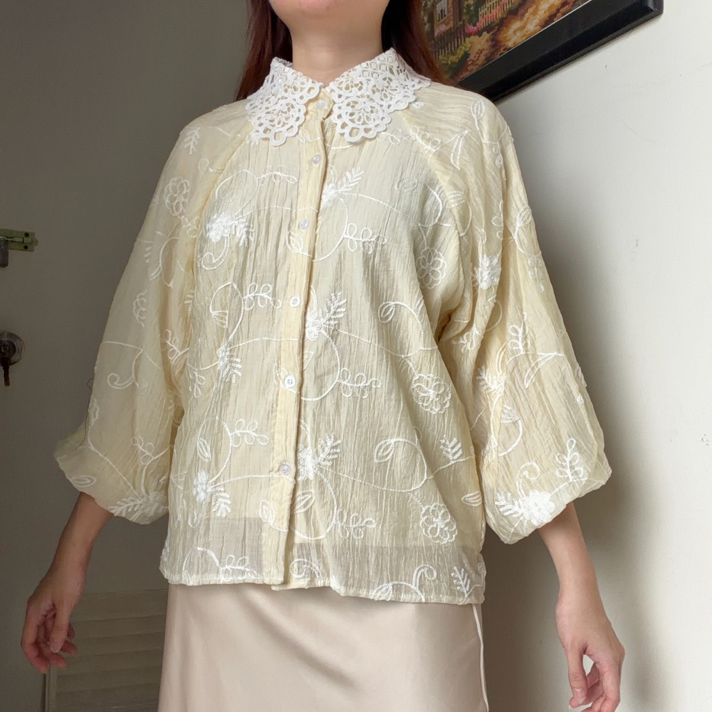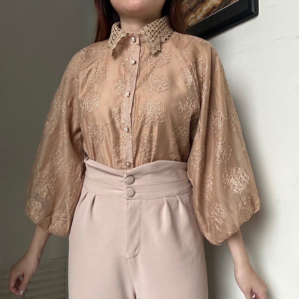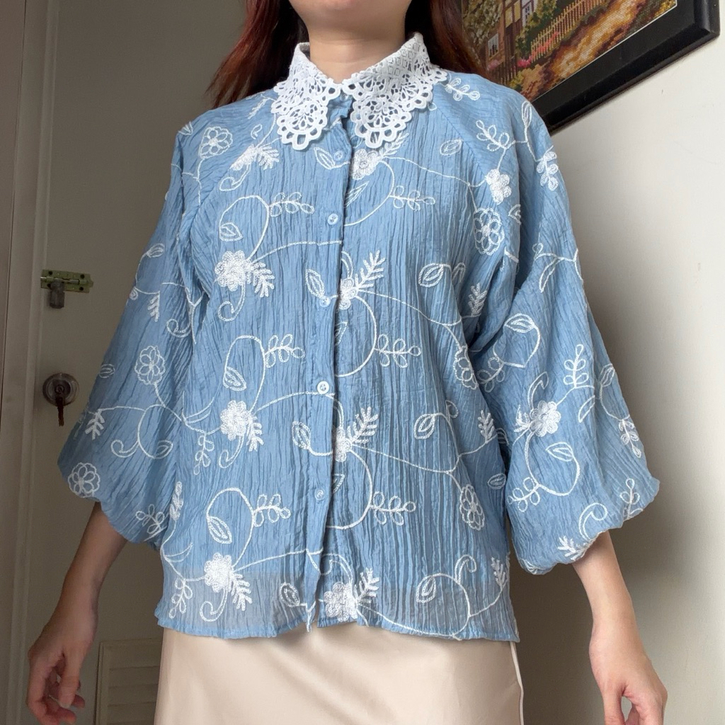 KEMEJA Liliana Top blouse shirt women's work organdi embroidery korean style by Biel the Label