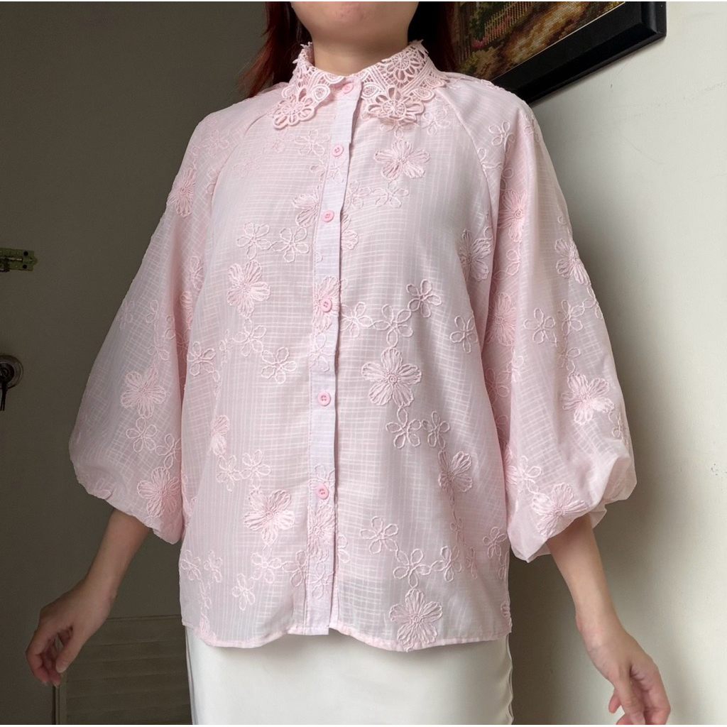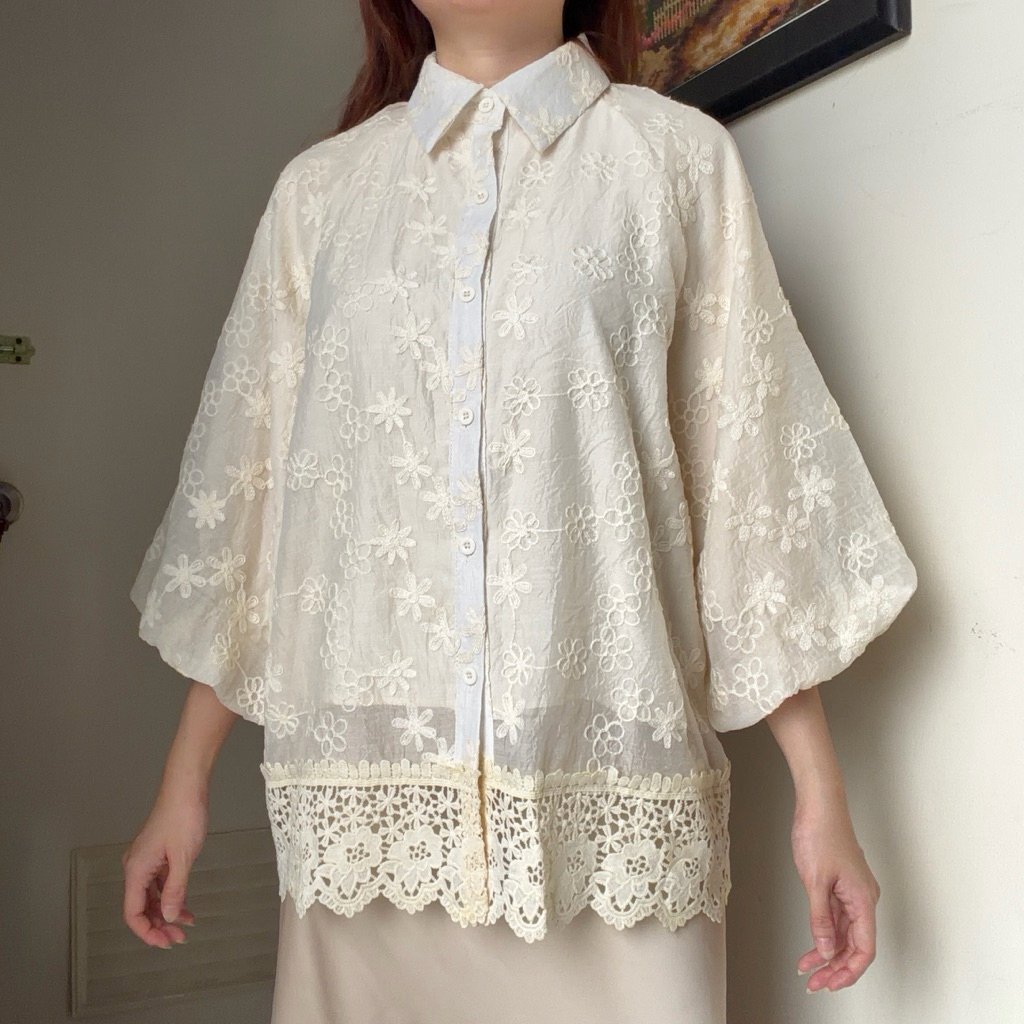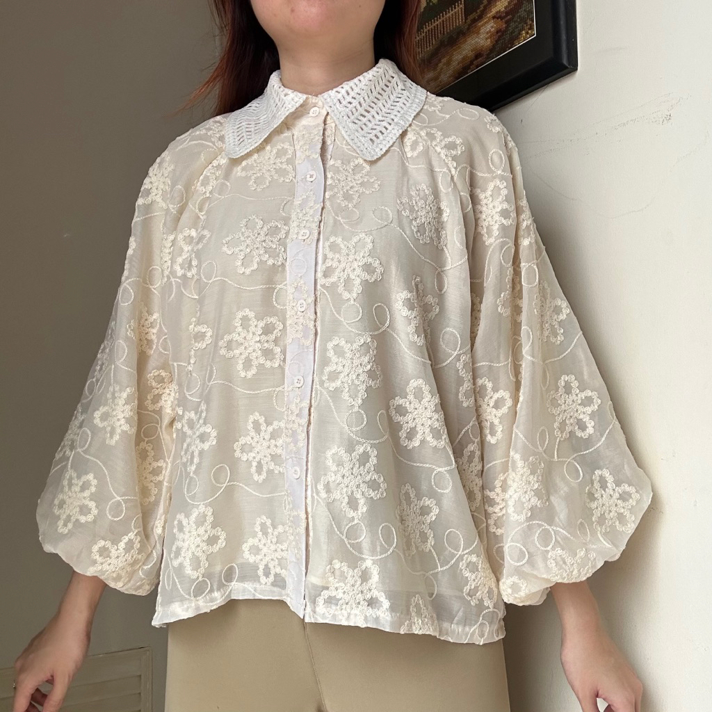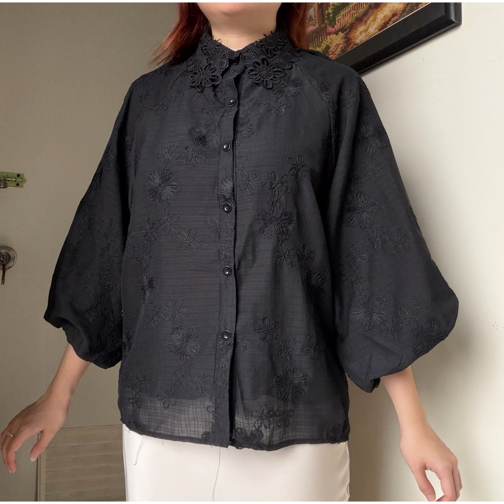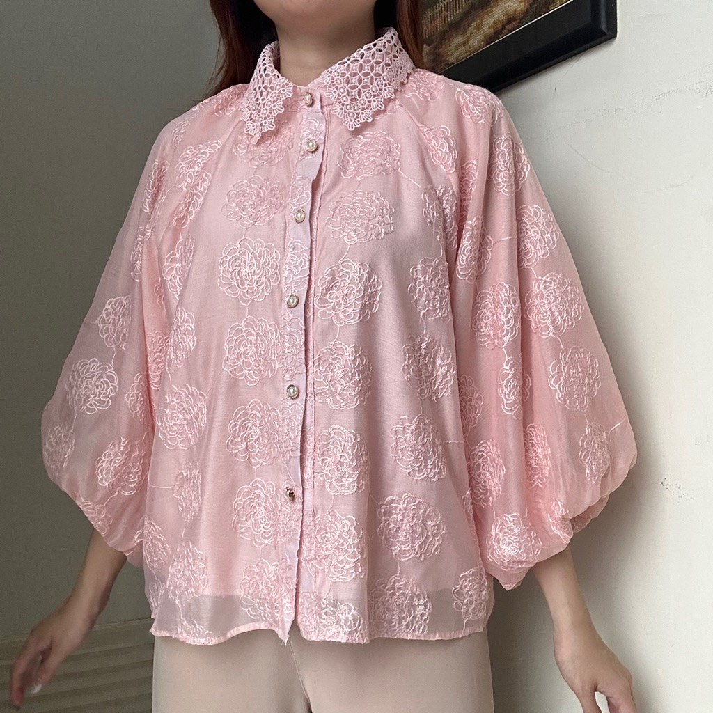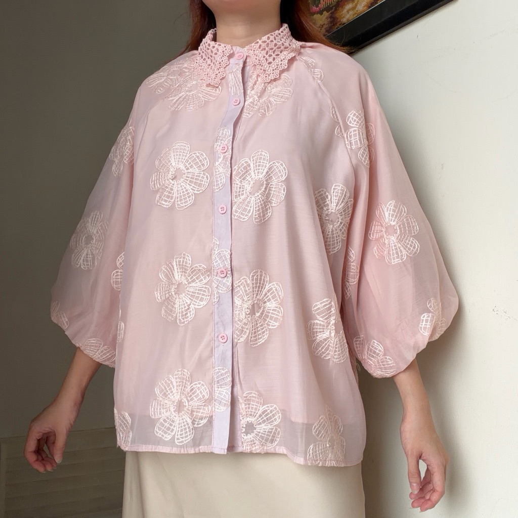 KEMEJA Liliana Top blouse shirt women's work organdi embroidery korean style by Biel the Label