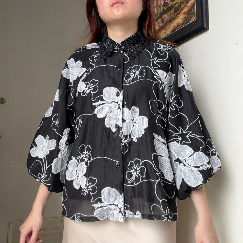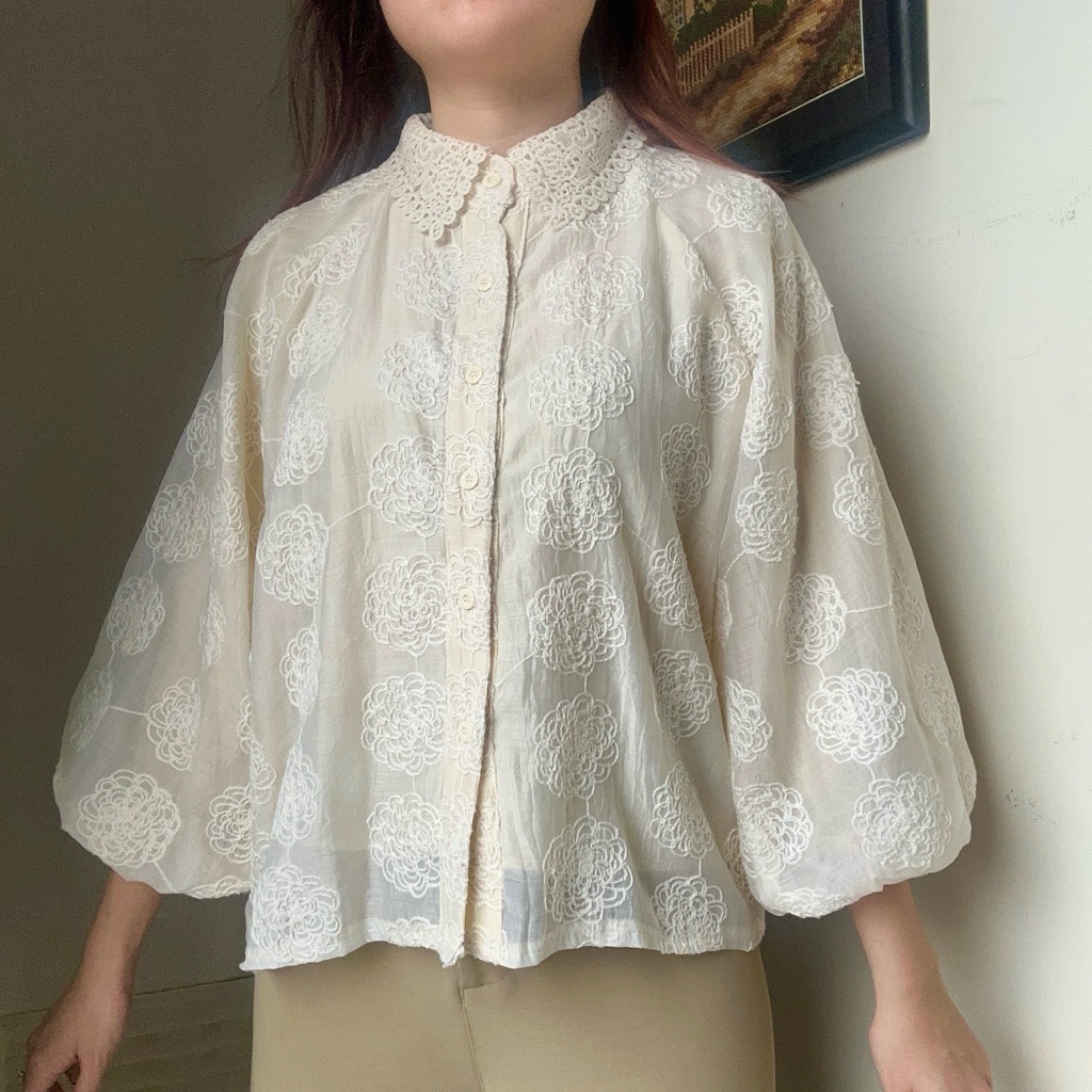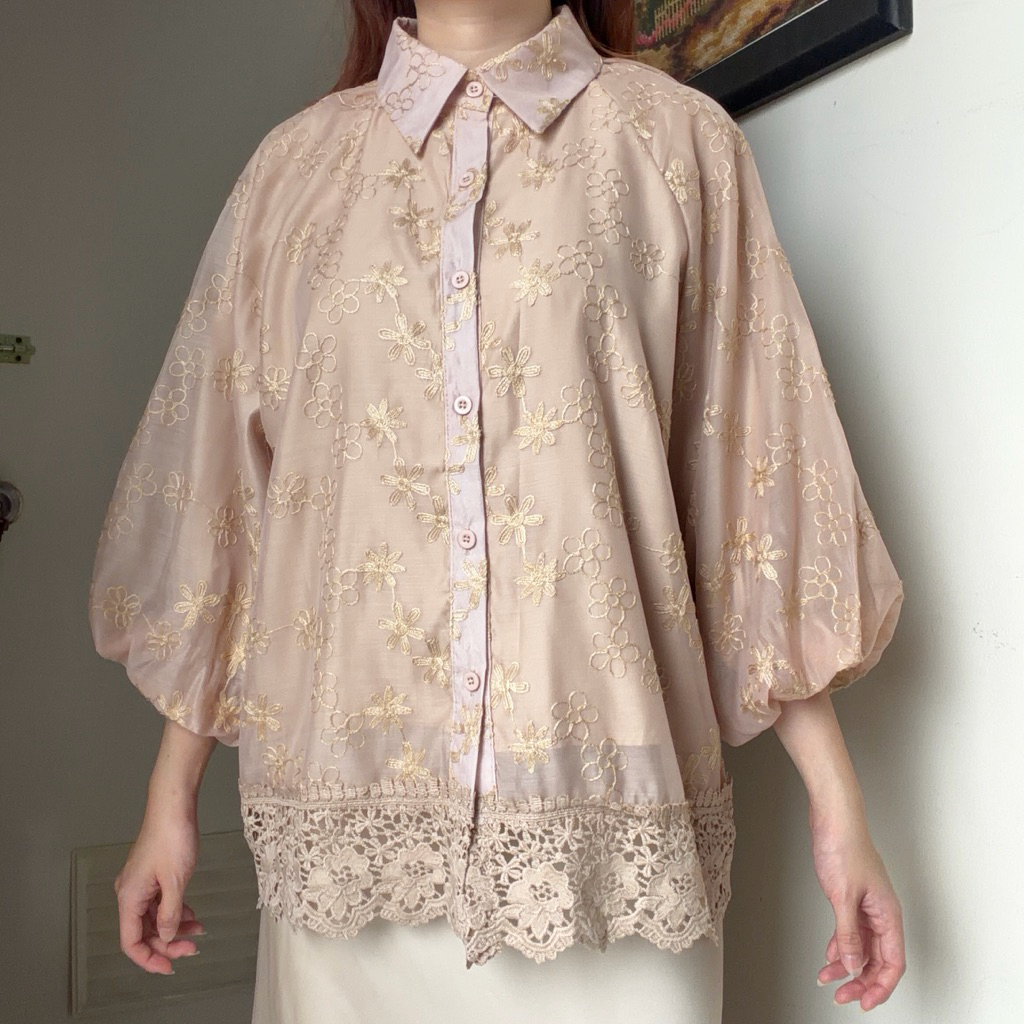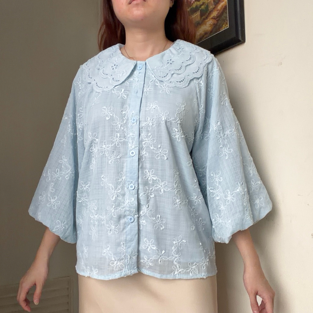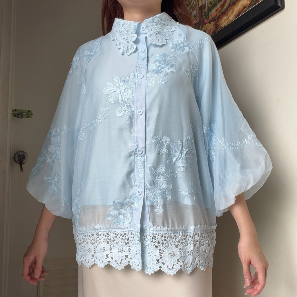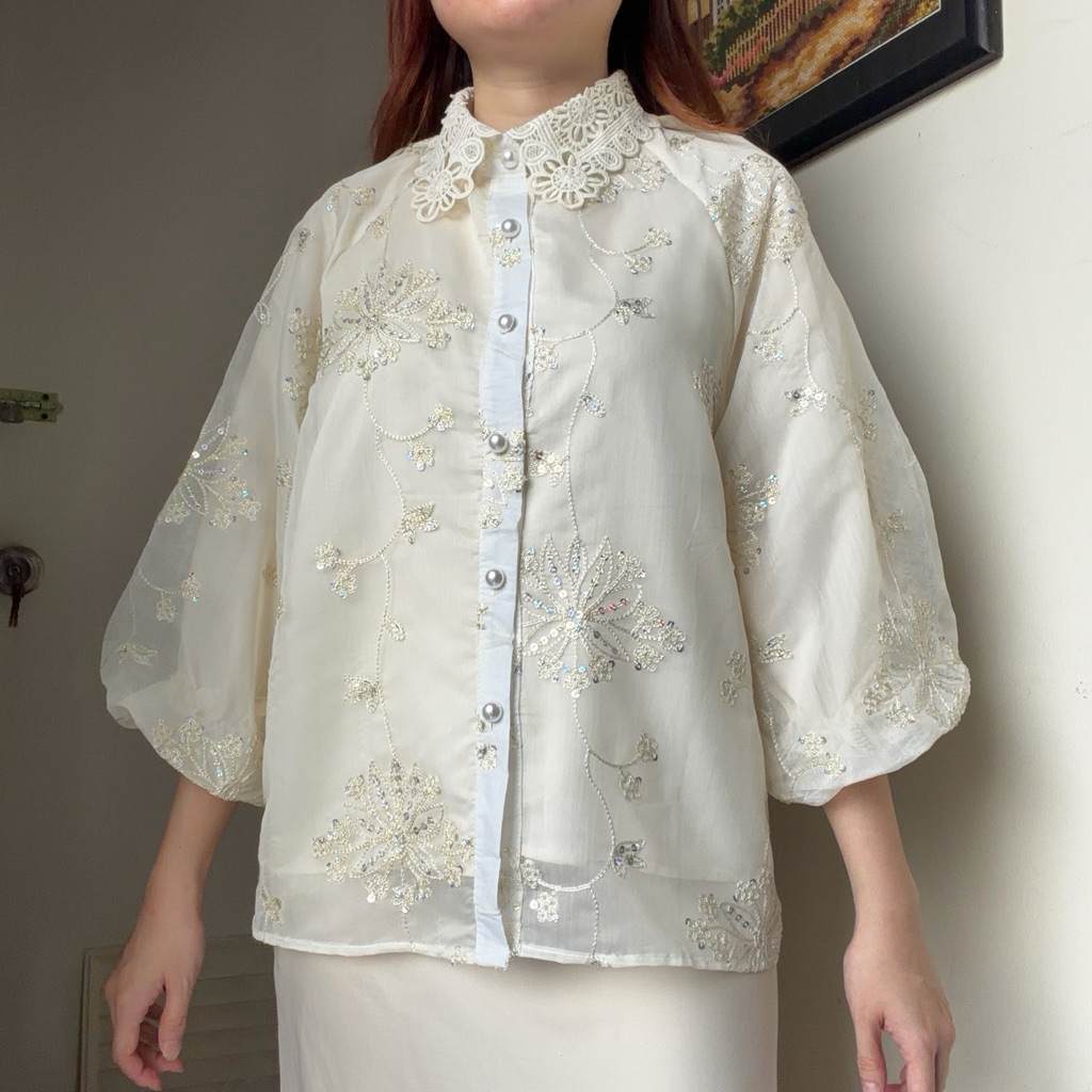 KEMEJA Liliana Top blouse shirt women's work organdi embroidery korean style by Biel the Label