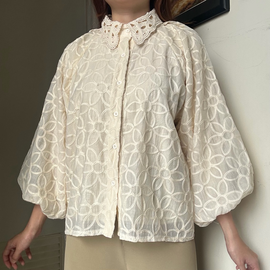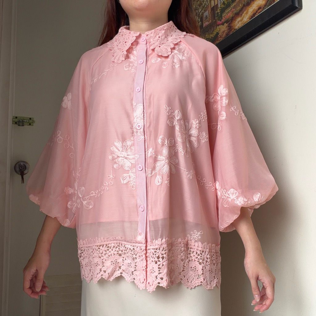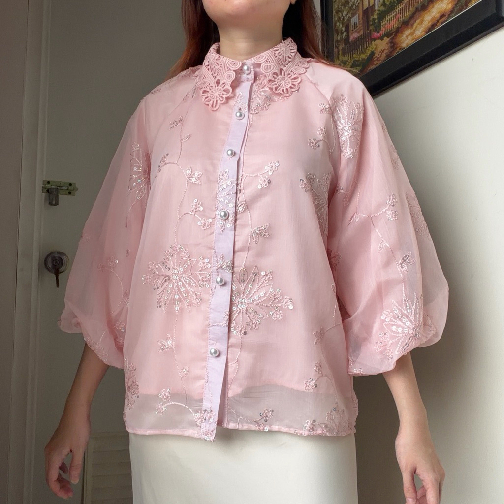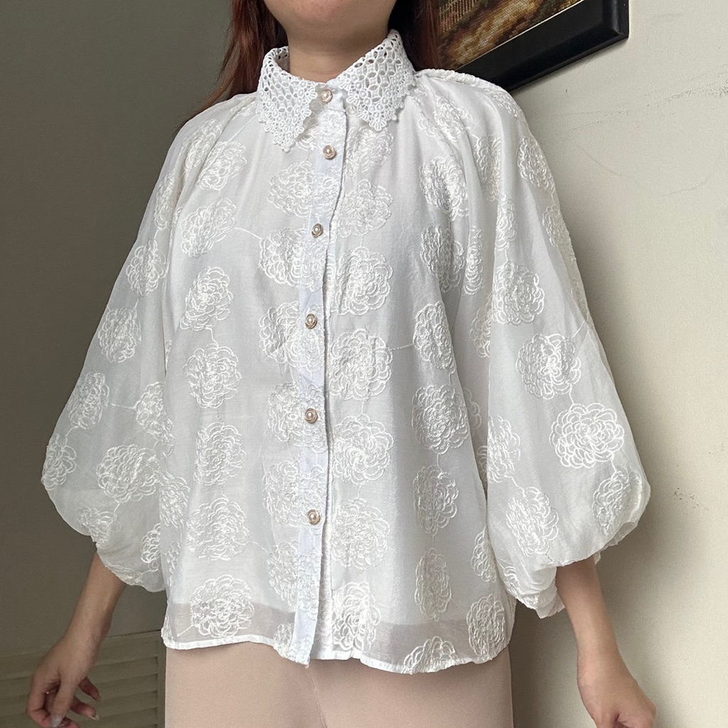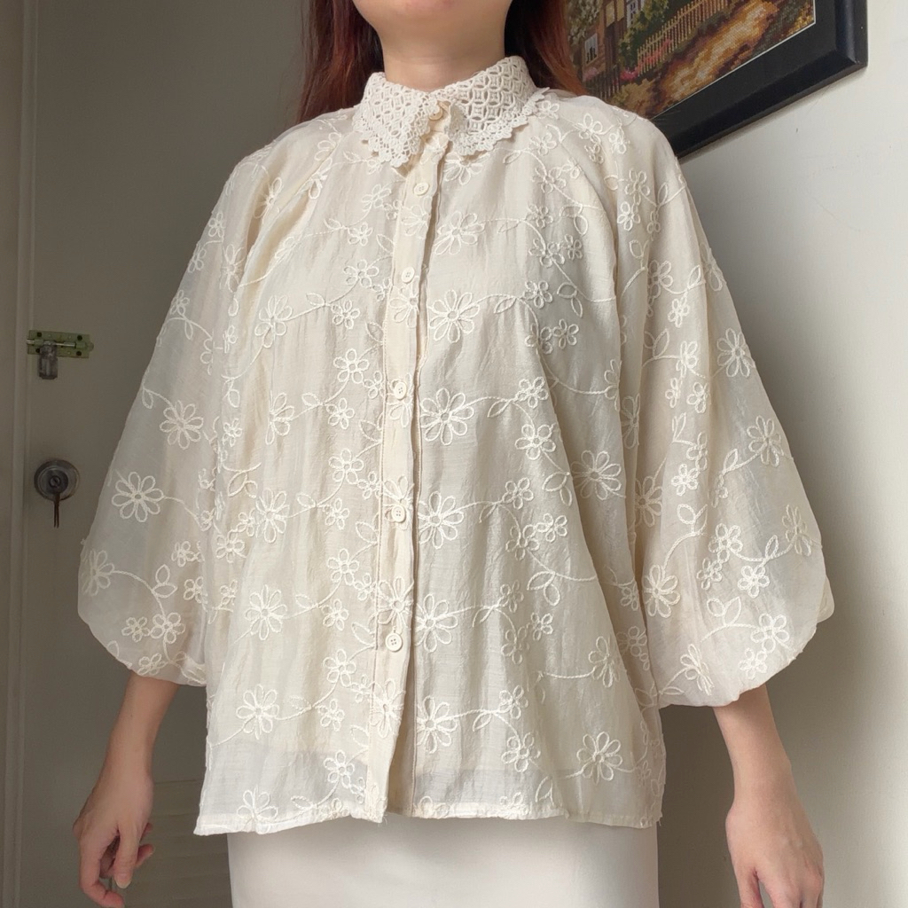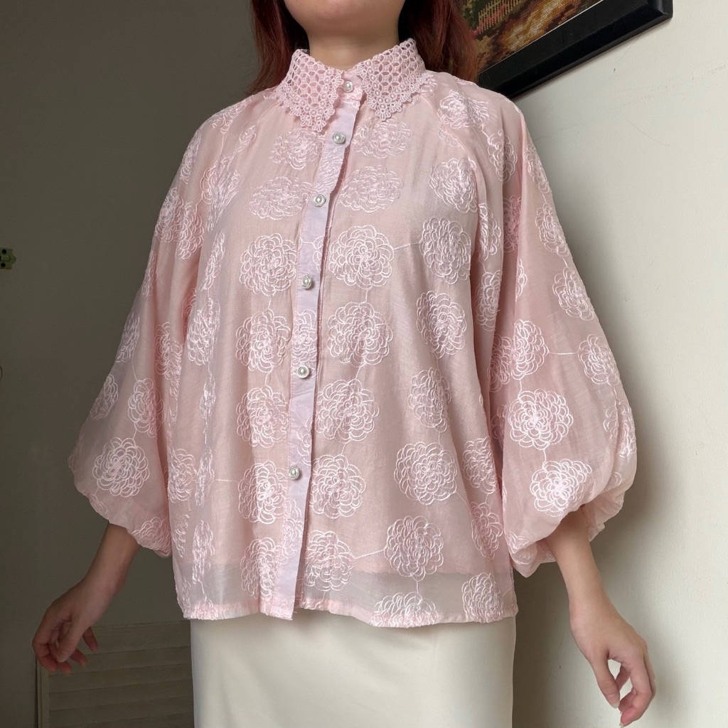 KEMEJA Liliana Top blouse shirt women's work organdi embroidery korean style by Biel the Label