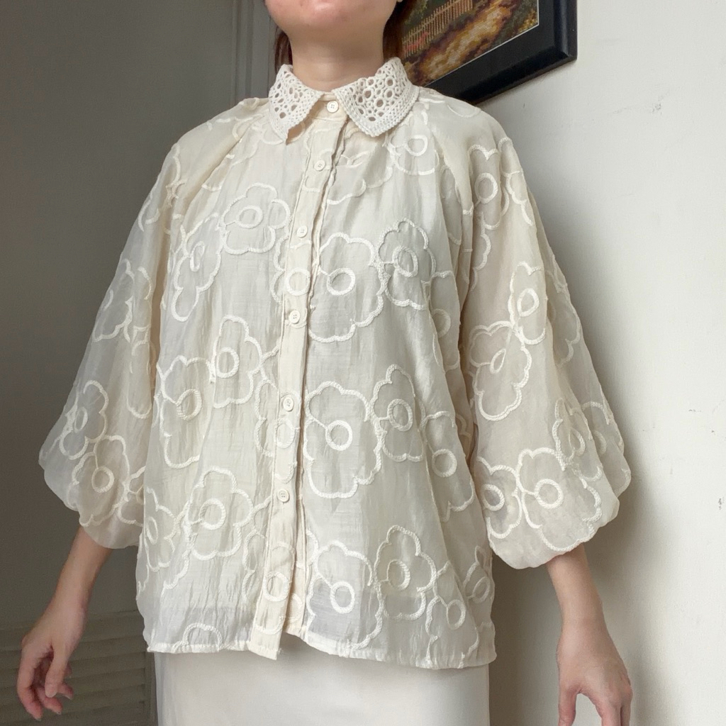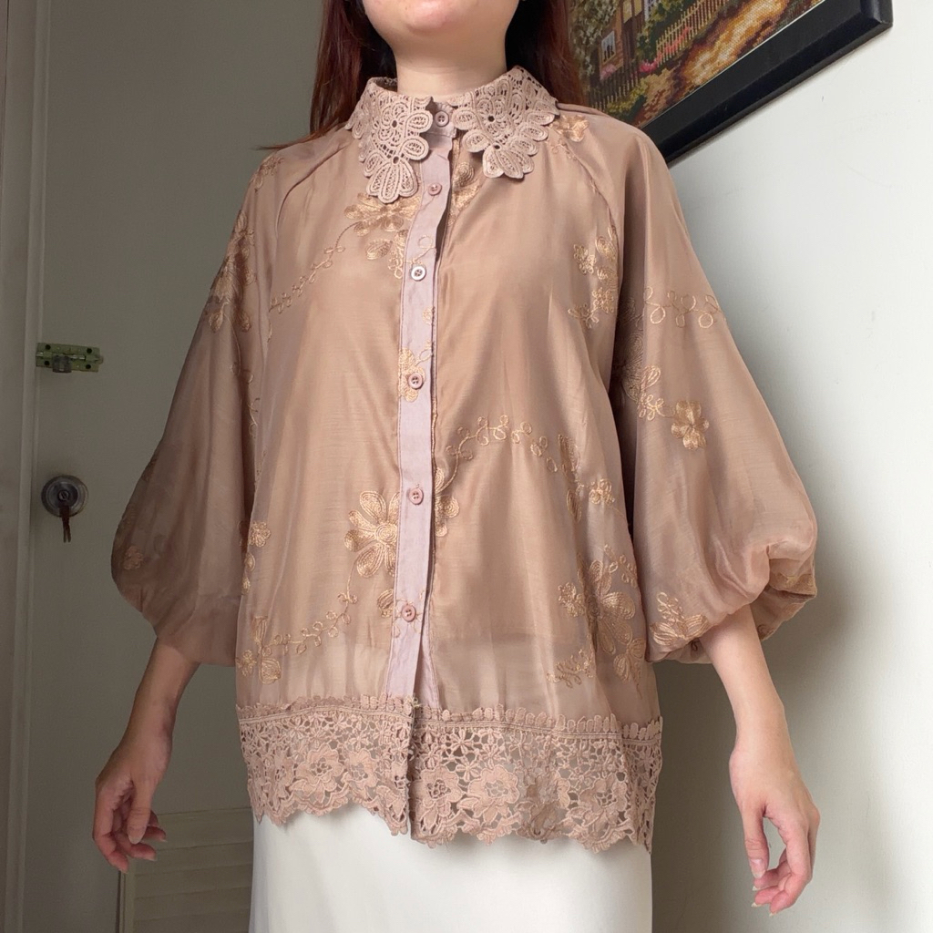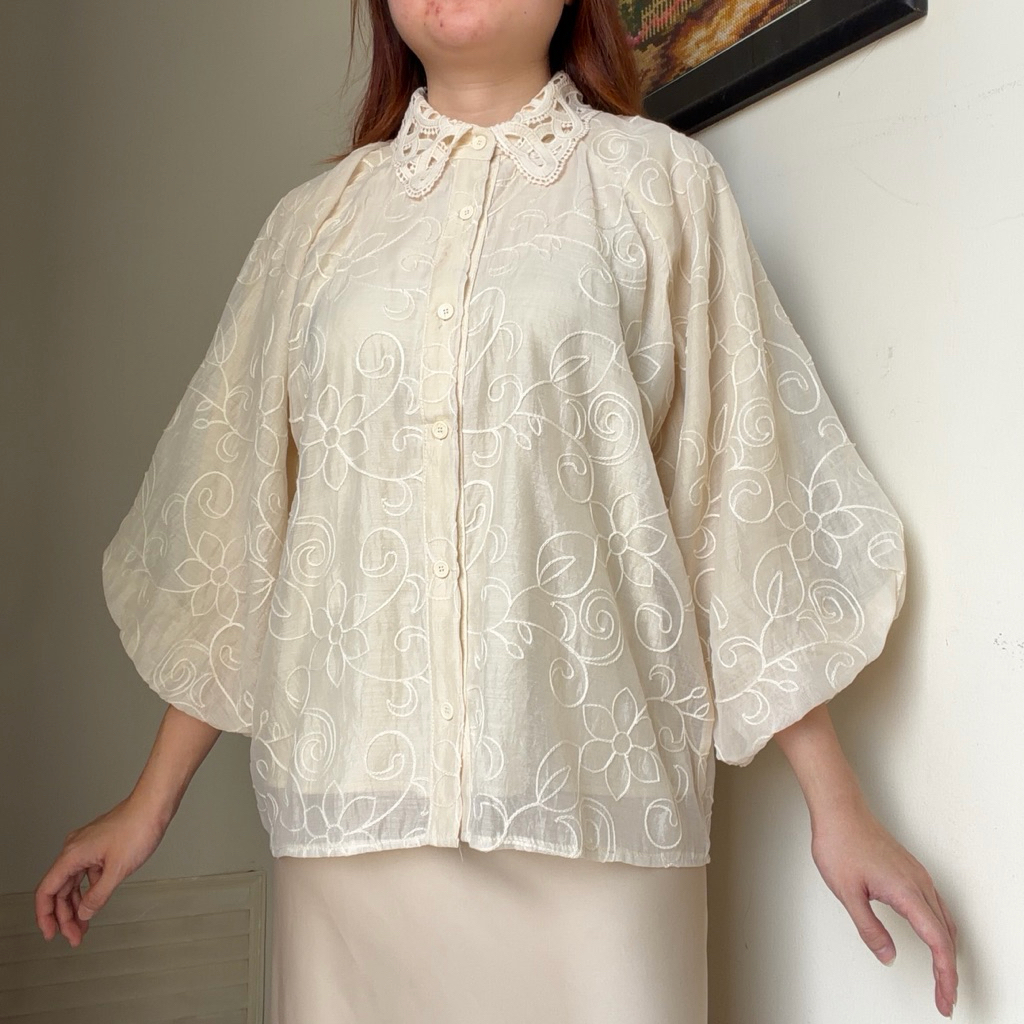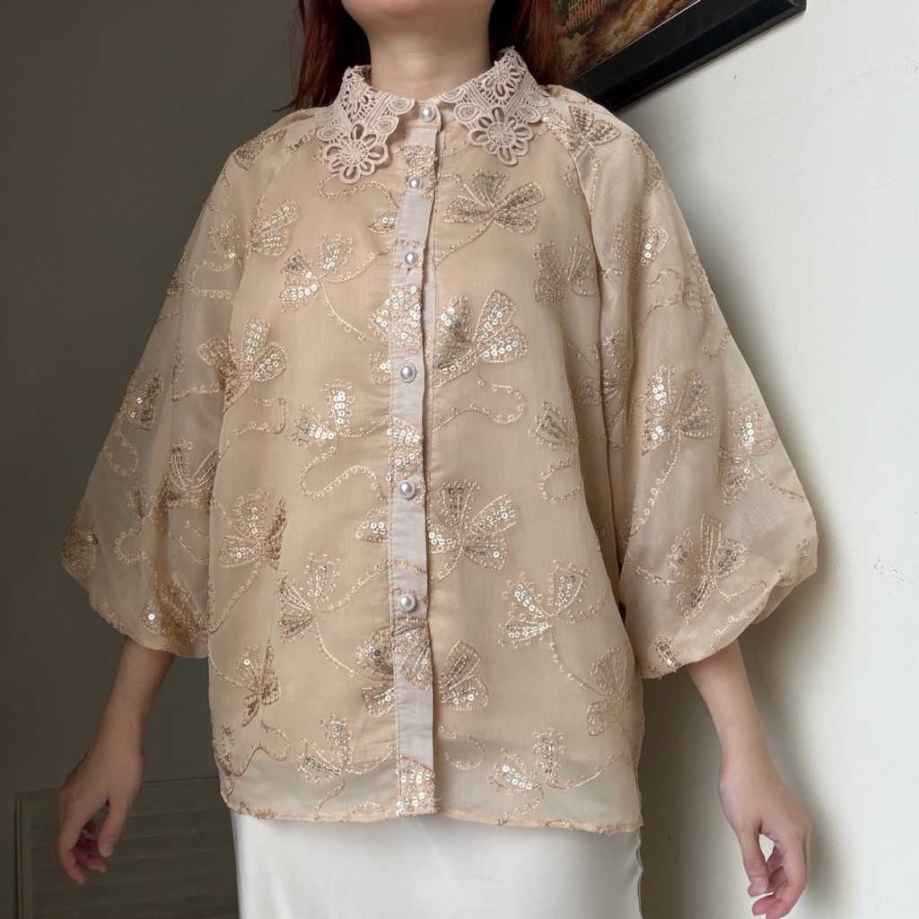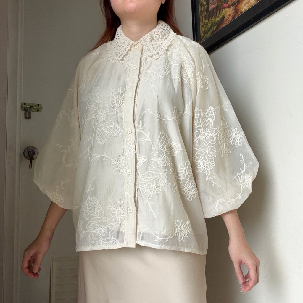 KEMEJA Liliana Top blouse shirt women's work organdi embroidery korean style by Biel the Label