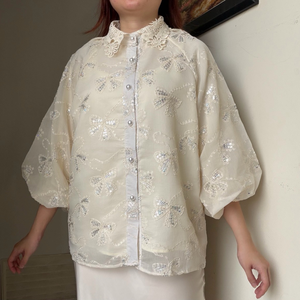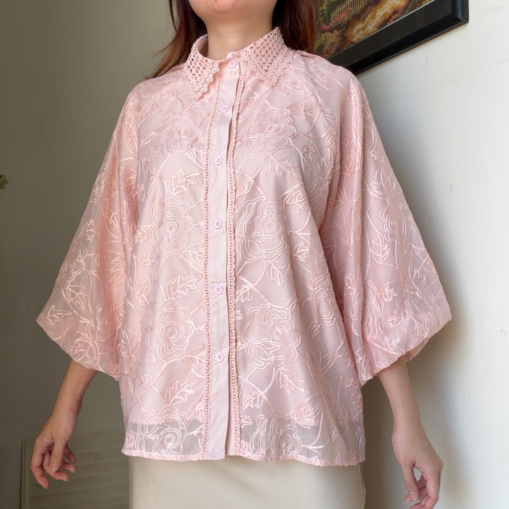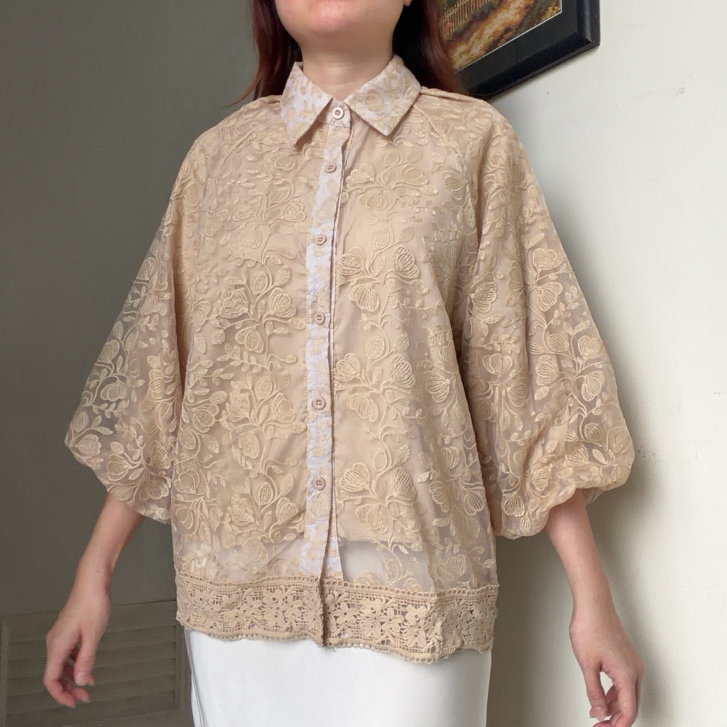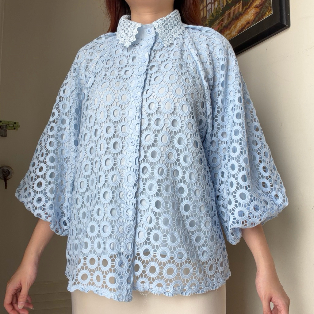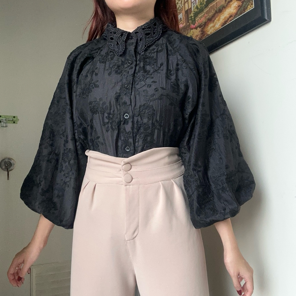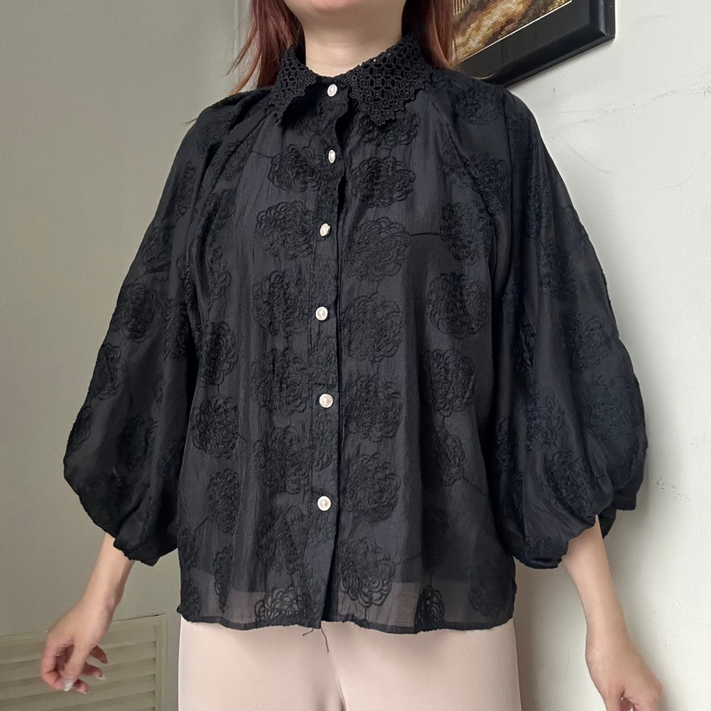 KEMEJA Liliana Top blouse shirt women's work organdi embroidery korean style by Biel the Label