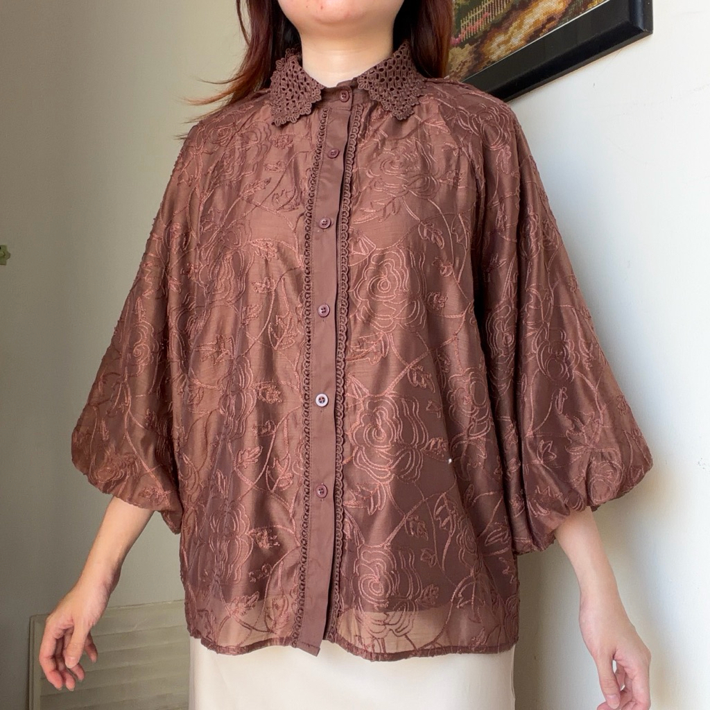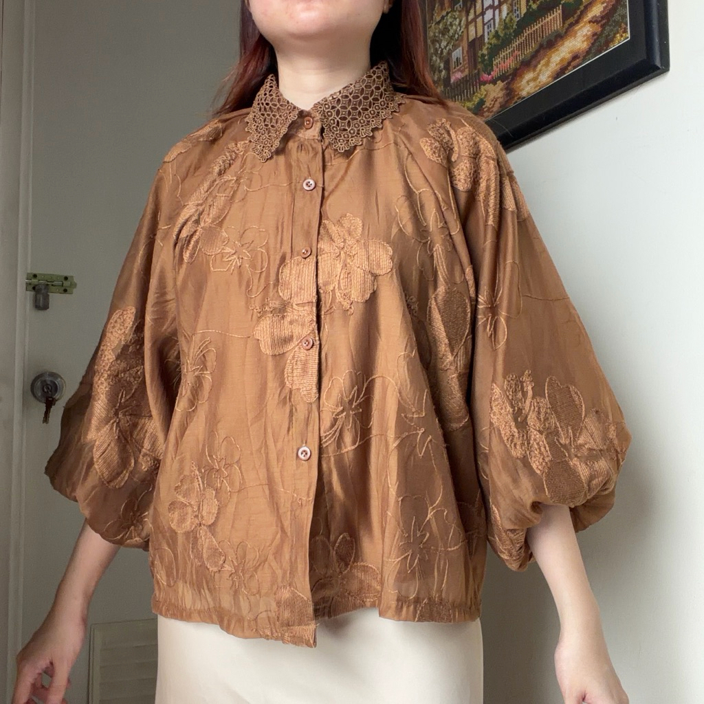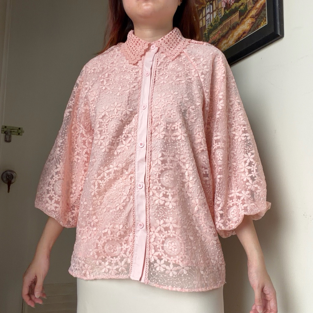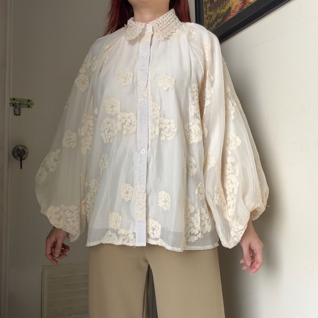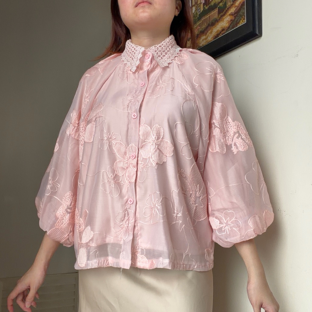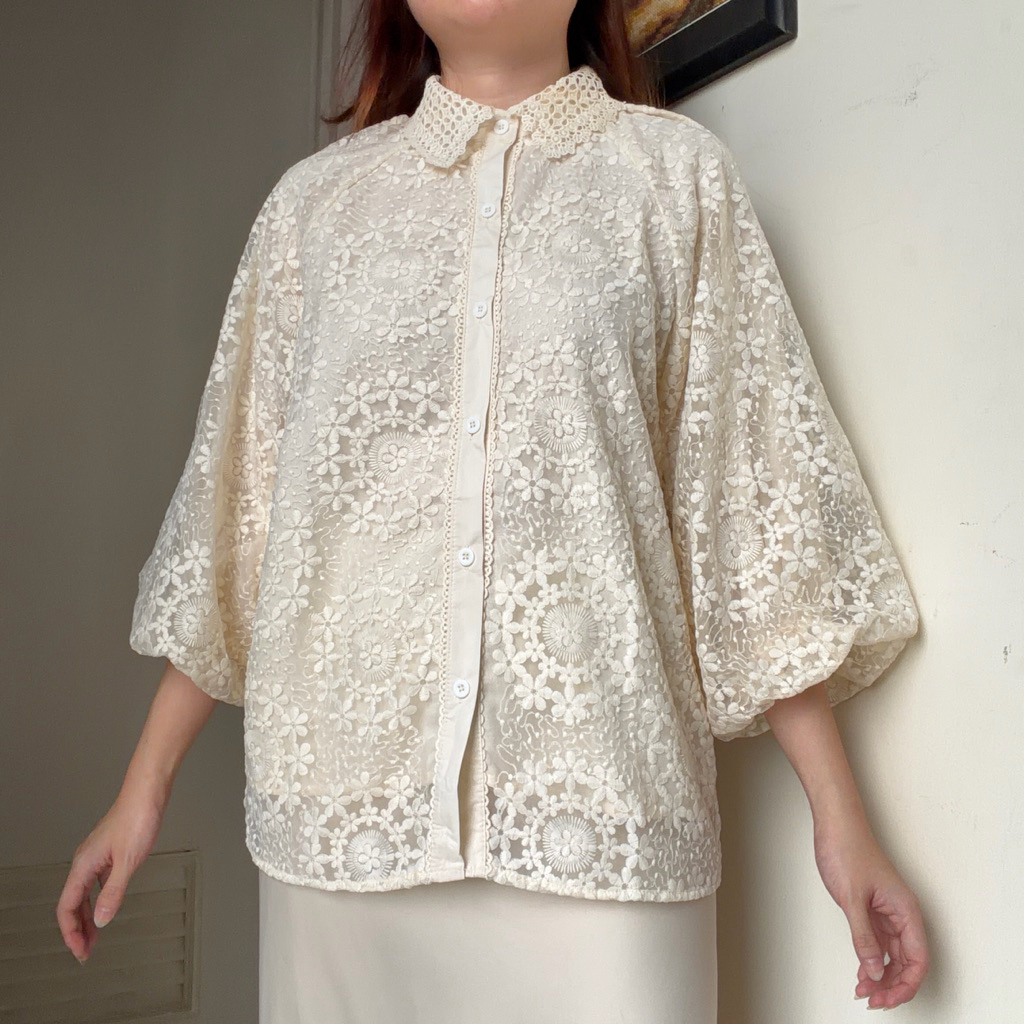 KEMEJA Liliana Top blouse shirt women's work organdi embroidery korean style by Biel the Label
