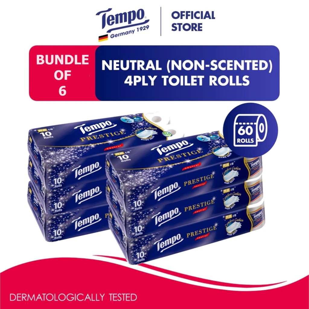 [Bundle Of 2/4/6] Tempo 4ply Tissue Rolls Neutral Non-Scented (10 Rolls)