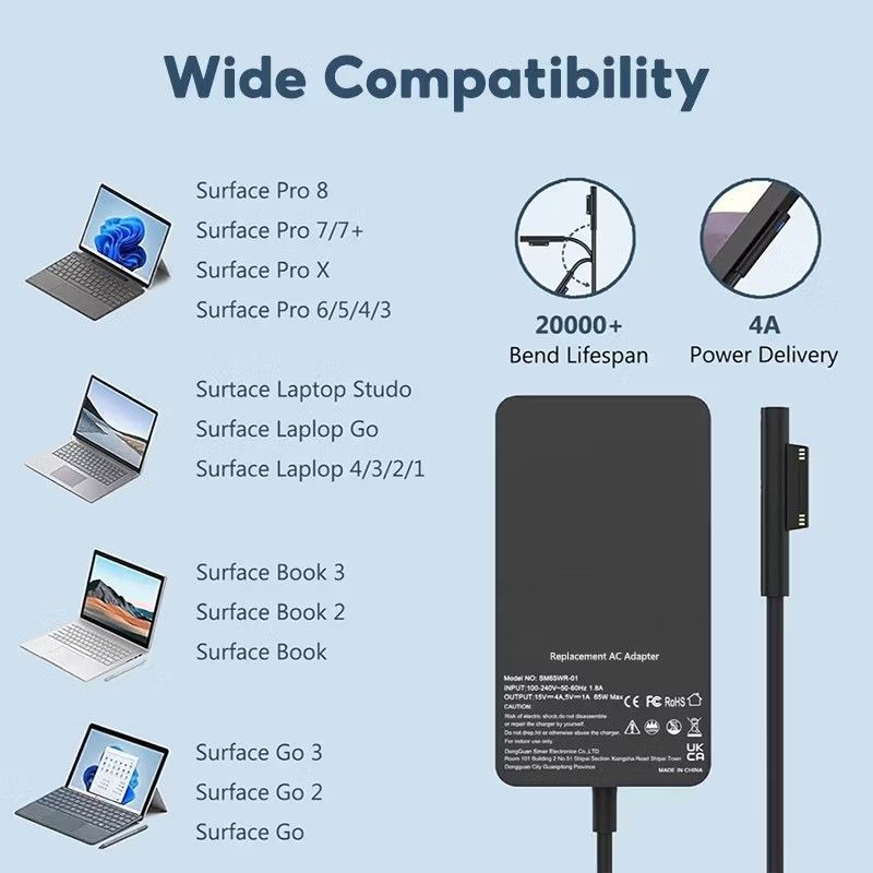 Surface Pro Charger, 65W 15V 4A Power Supply AC Adapter Charger for Microsoft Surface Pro 3_4_5_6_7_8_9_X Surface Laptop