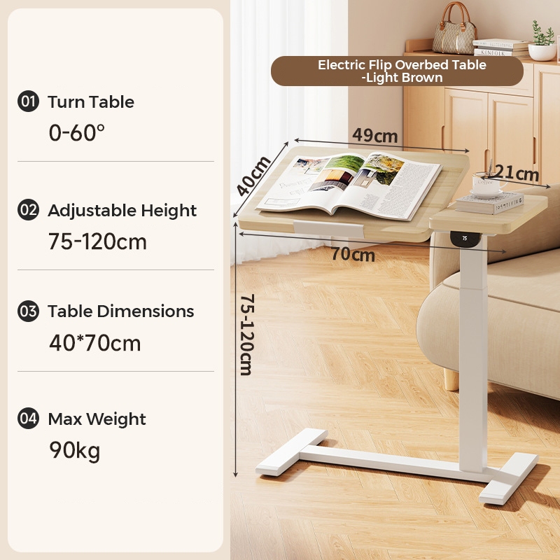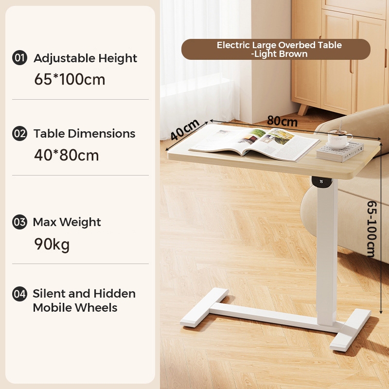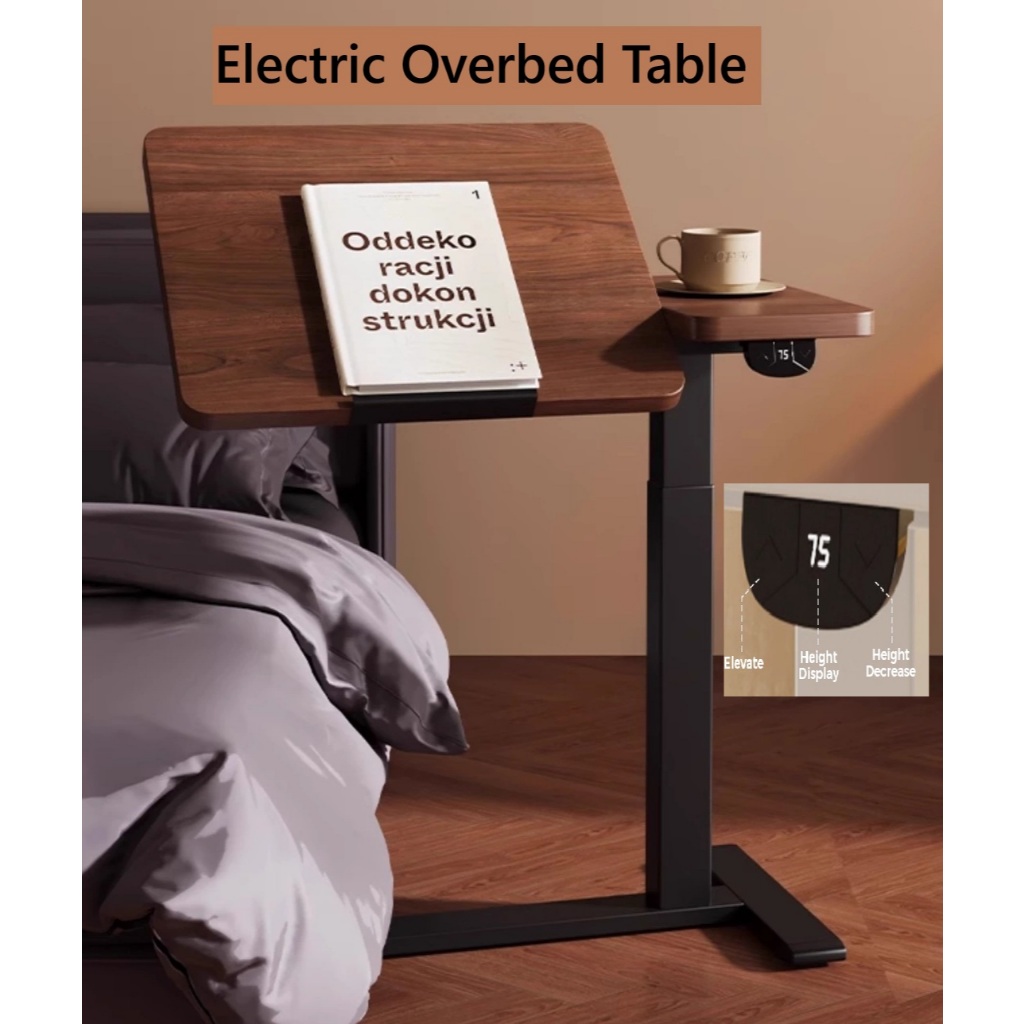 Smart Ergo Electric Height Adjustable Overbed Table | Electric Wireless Bedside Table