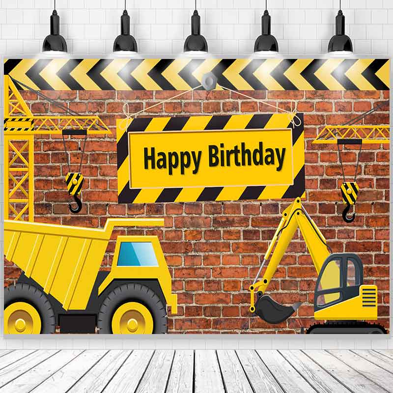 Construction Team Birthday Backdrop Photography Baby Shower Kids Children Yellow Black Truck Excavator Background Party Decor Photos Shoots