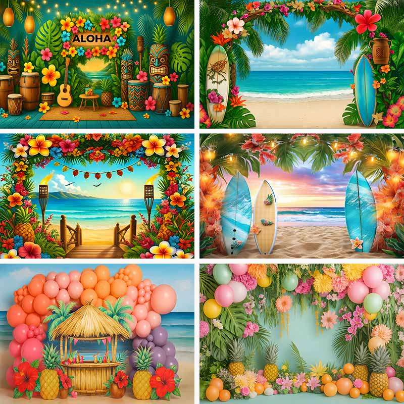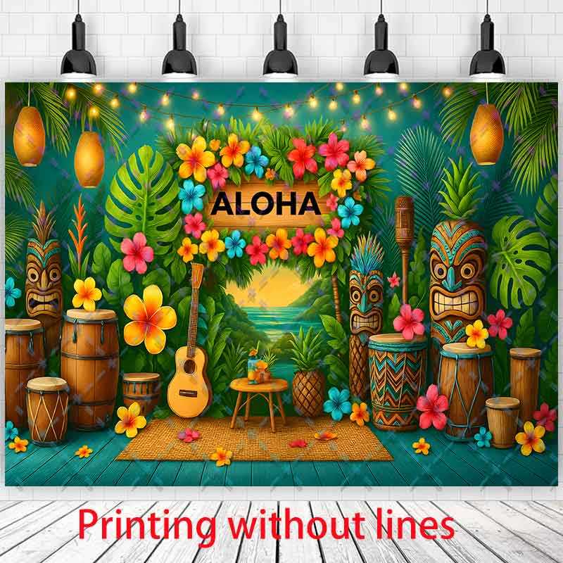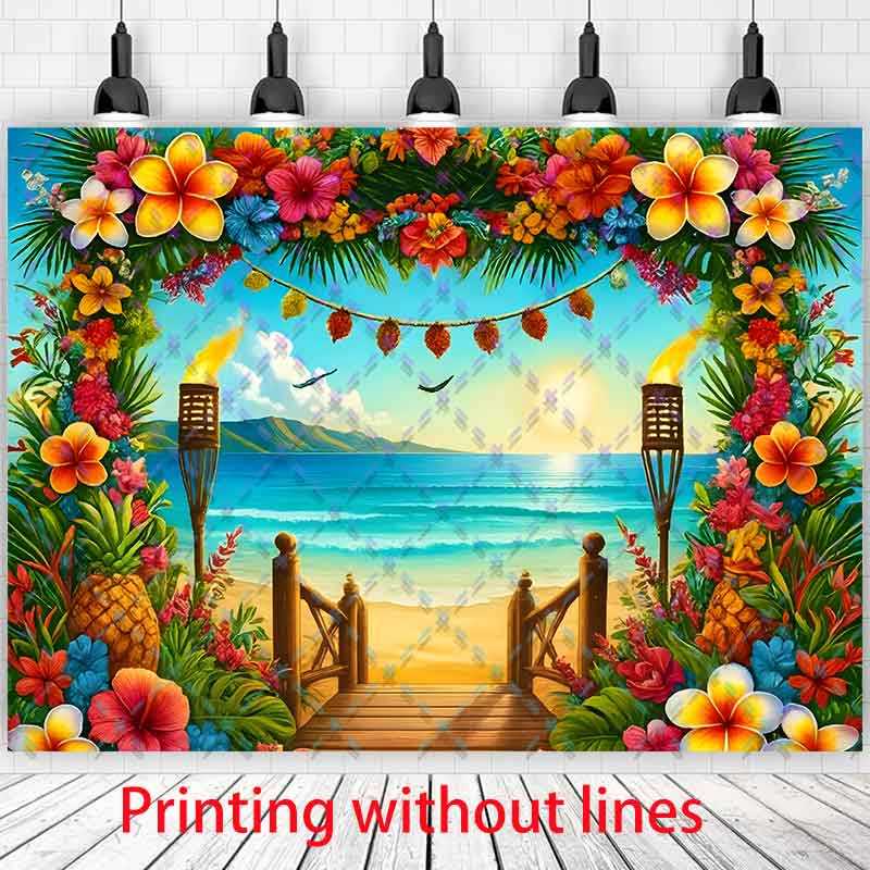 Aloha Birthday Backdrop Photography Baby Shower Kids Children Boys One Year Old Cake Smash Beach Hawaii Flowers Background Party Decor As The Pic Print