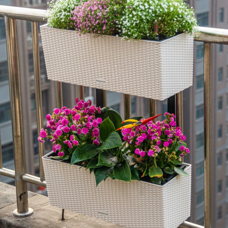 [in stock] Balcony Garden Decoration Railing Hanging Flowerpot Flower Planting Rack Stand Rectangular Box Basket Hanger