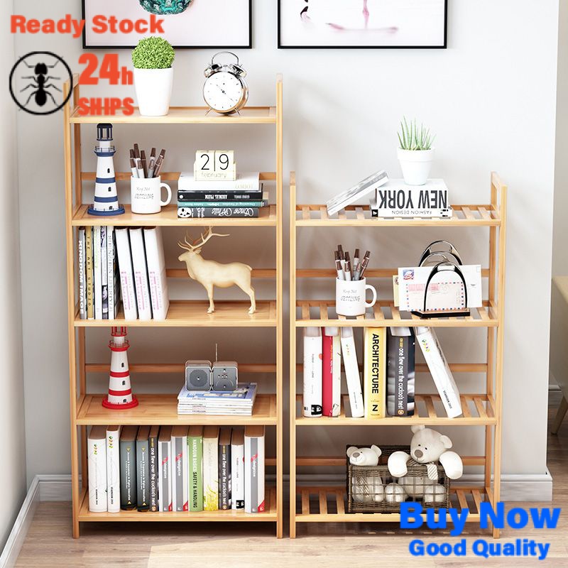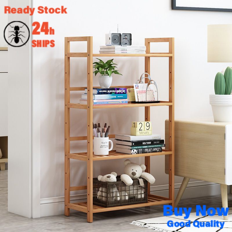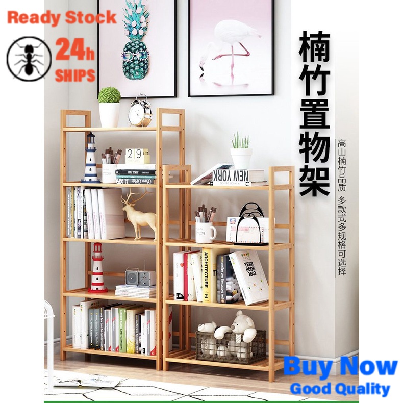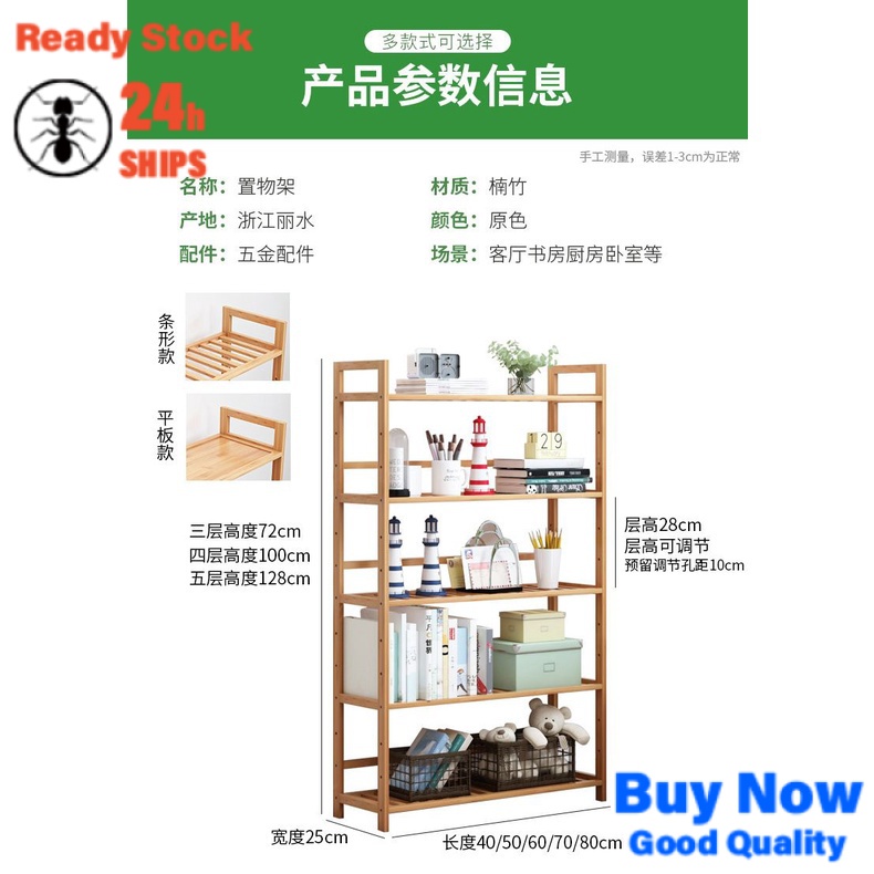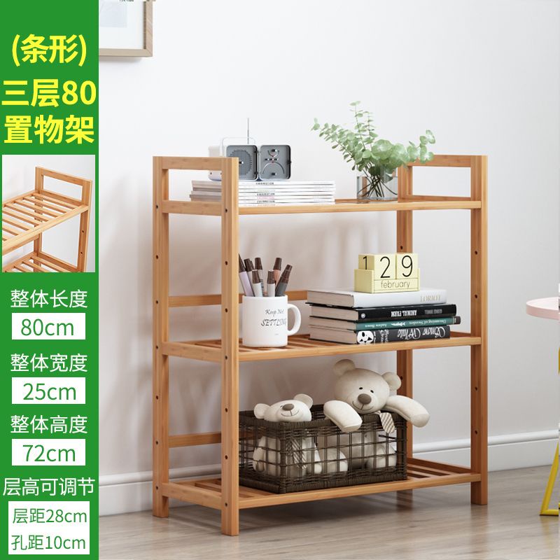 [in Stock] Bamboo Simple Kitchen Shelf Bathroom Floor Bookshelf Bedroom Bathroom Storage Multi-Layer Storage Shelf Shelf Kd3i