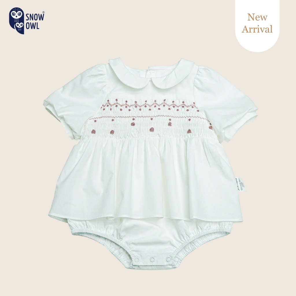 Snow Owl Children's Party Wear Premium Cotton Emma Smock White Baby Dress
