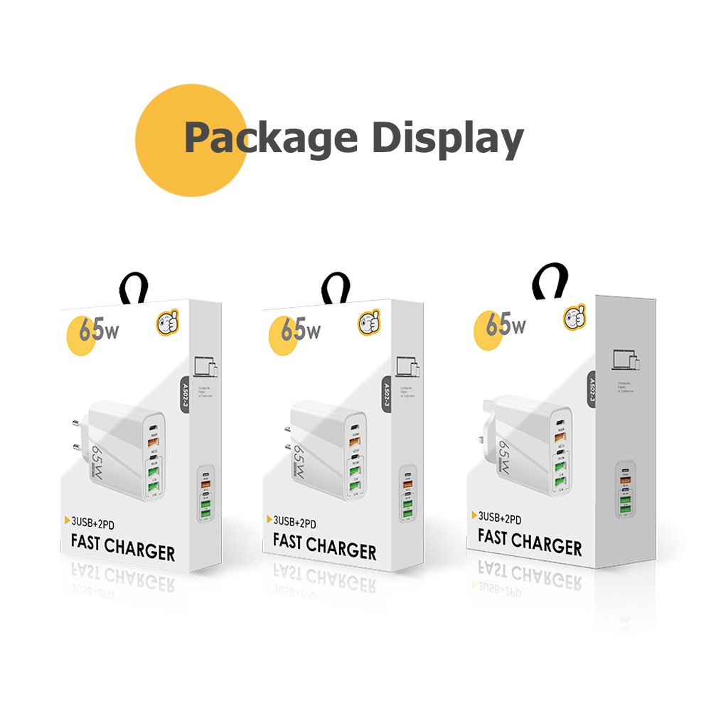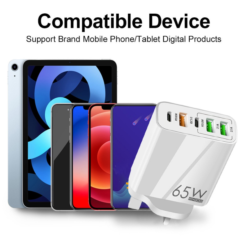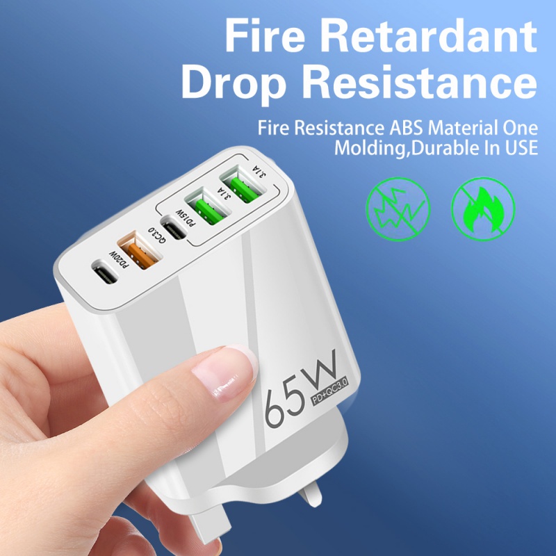 USB C Wall Charger,65W 5-Port Fast Charging Block USB C Charger Dual Port PD+QC Wall Plug Multiport Type C
