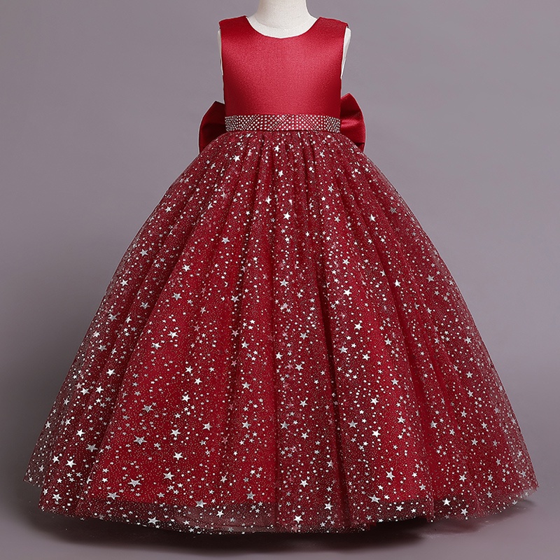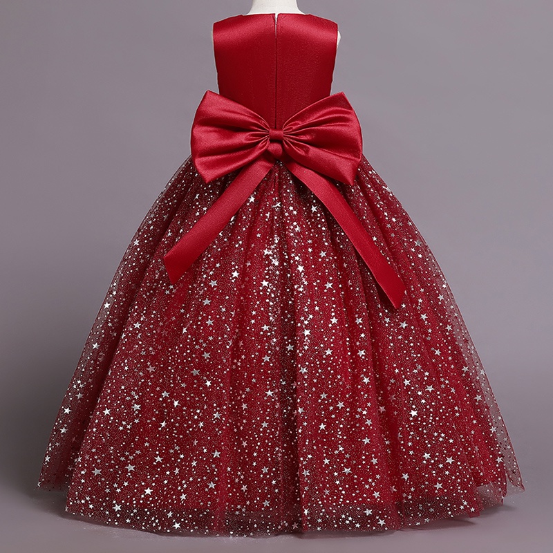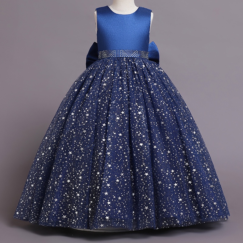 Girls Princess Dress Age 3-13 Sleeveless Big Bow Fluffy Lace Gown For Children Birthday Party Performance Costume