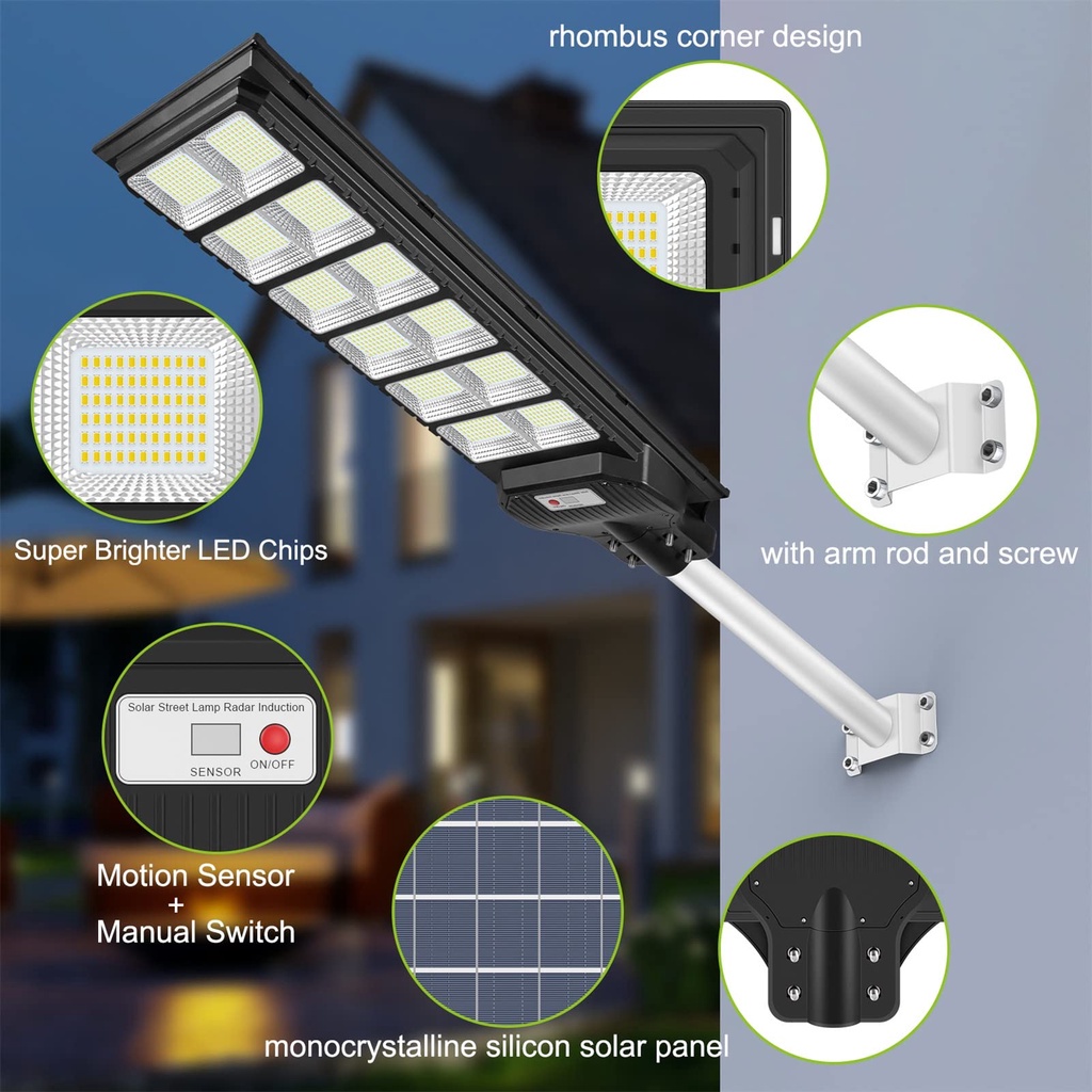 KEELAT 1000W Street motion Sensor Lamp Solar Light Outdoor Lighting LED Remote Control Wall Lamp Waterproof IP67