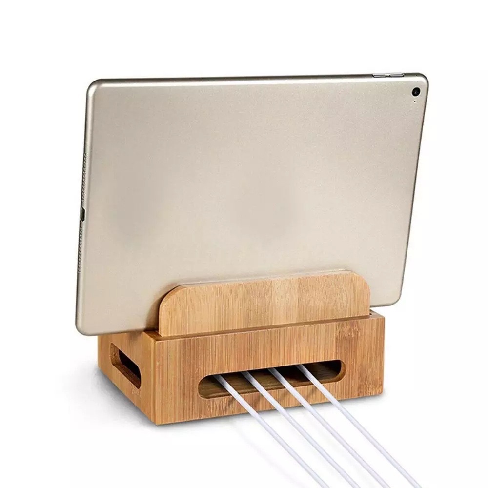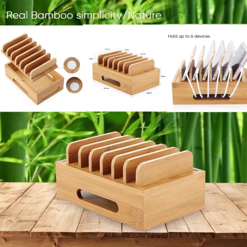 [SG Seller]Eco Bamboo Charging Station Dock Organiser Storage Box Charging Station Charger Dock Stand Holder Gift