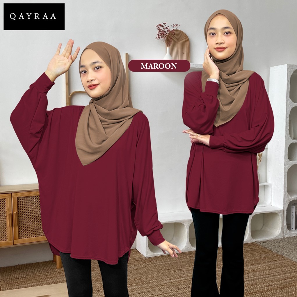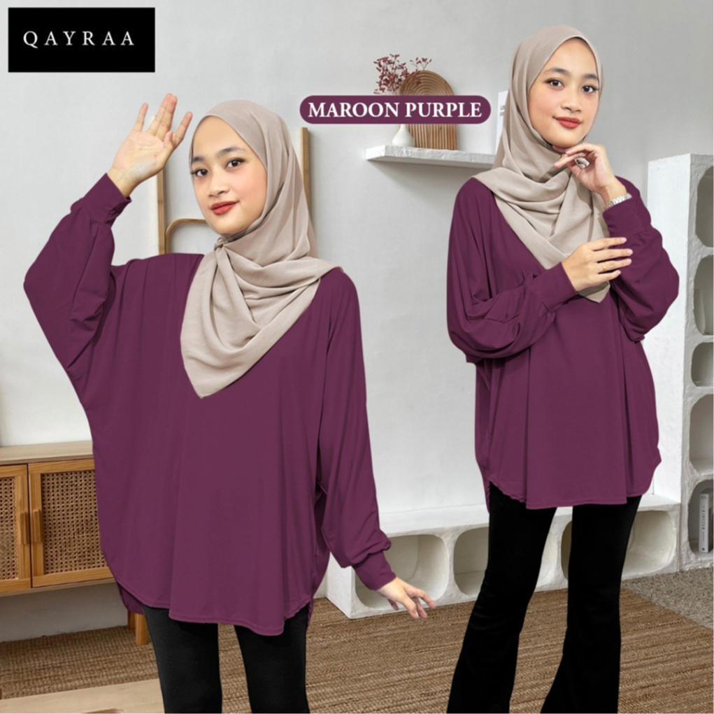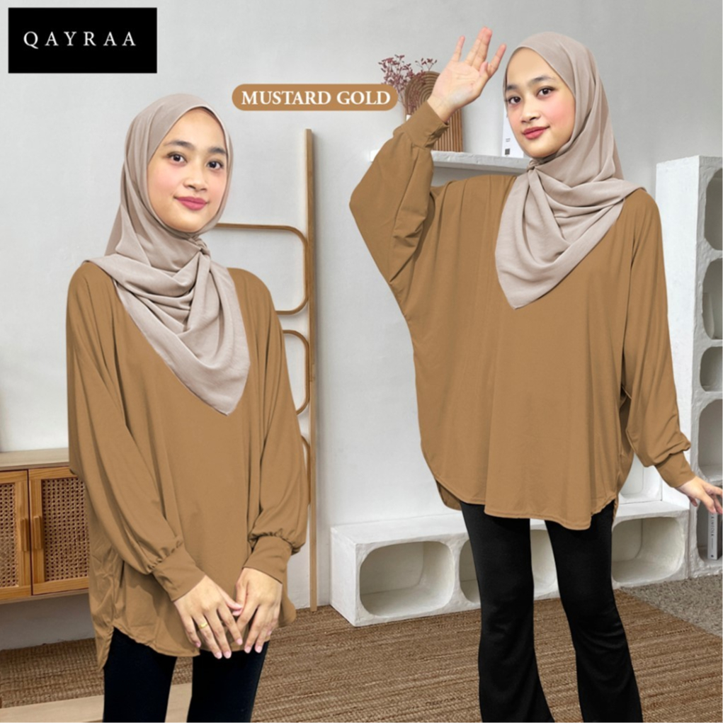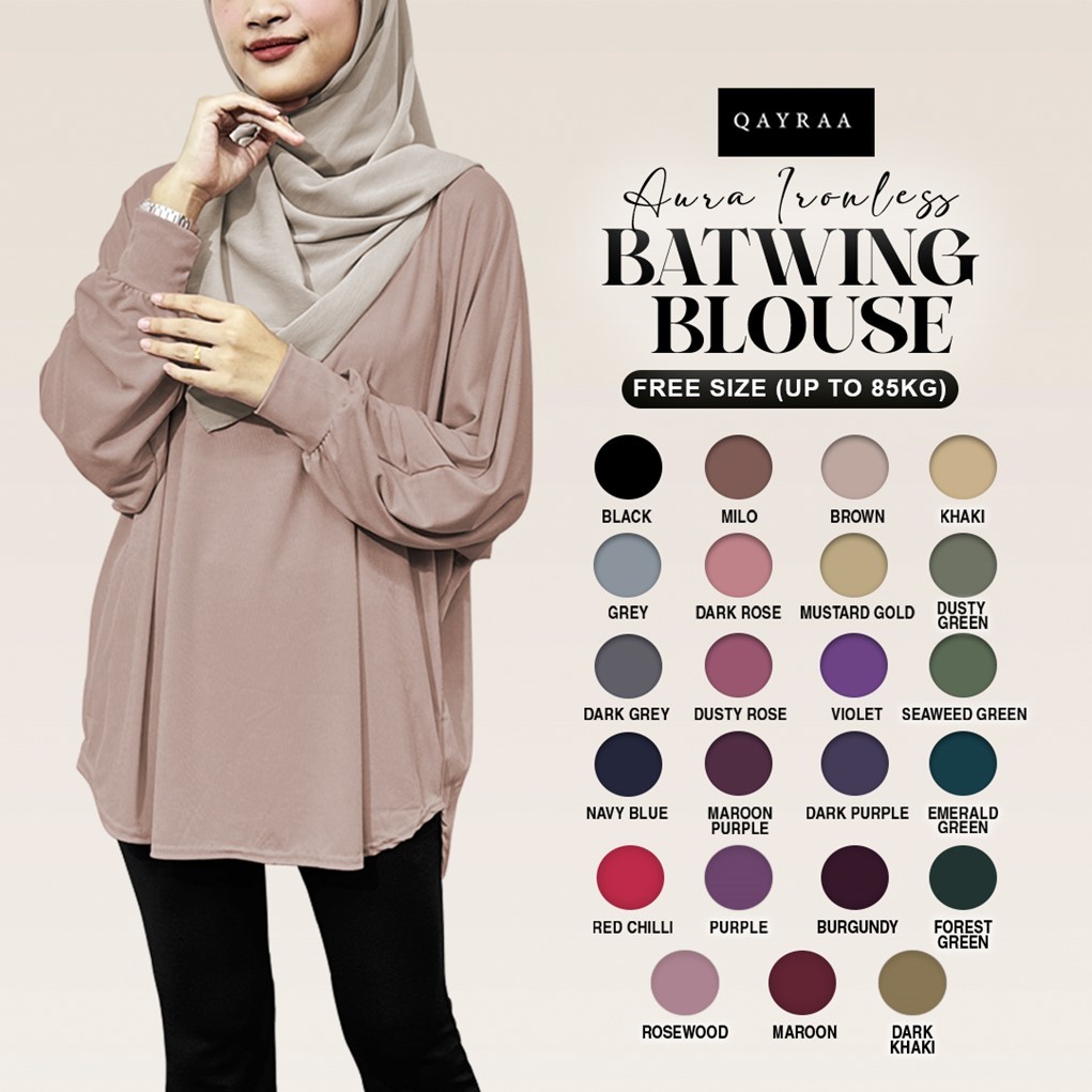 QAYRAA Aura Ironless Batwing Blouse Ribbed Texture -Free Size/MUSTARD GOLD/BLACK/VIOLET/RED CHILI/NAVY BLUE