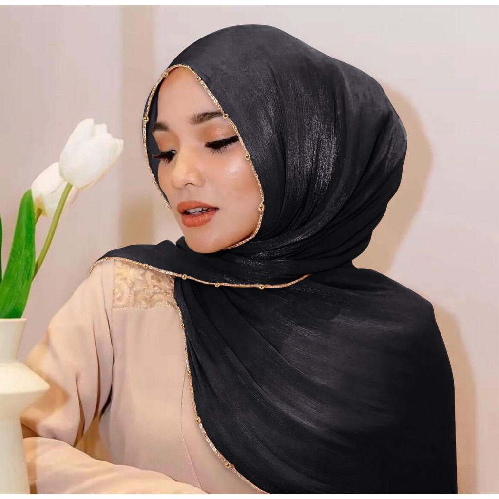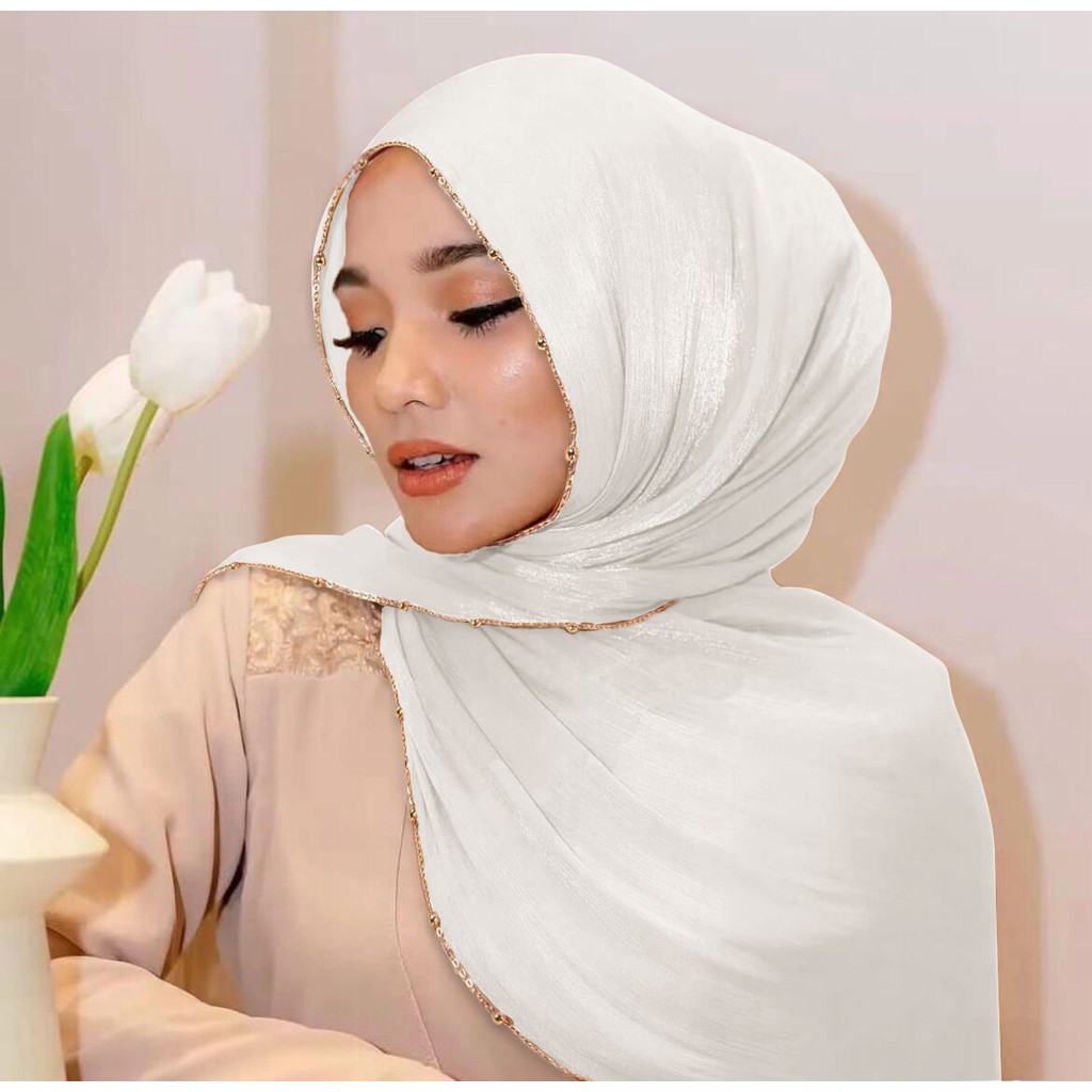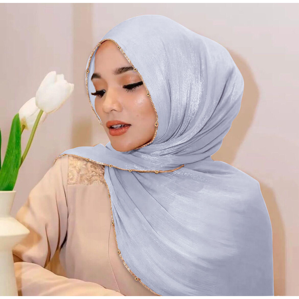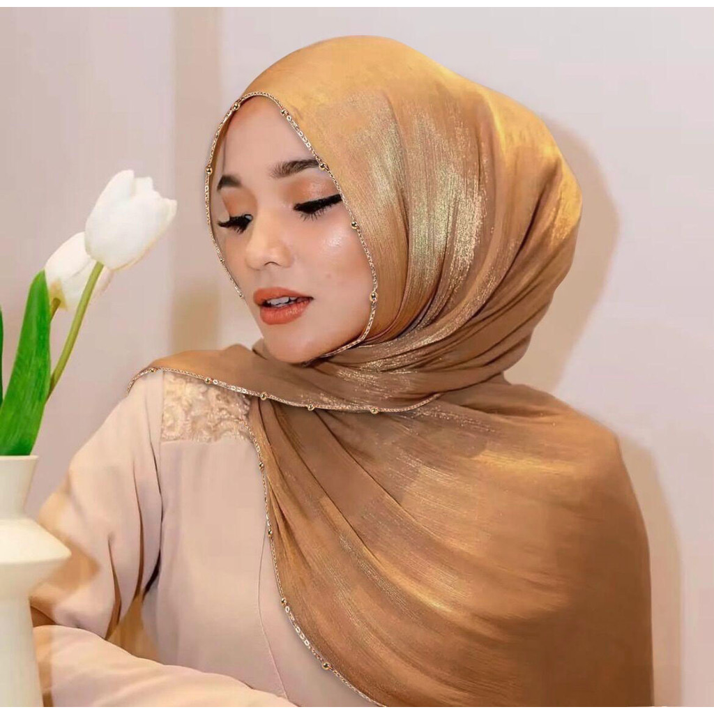 Metal Bead Chain Shimmer Silk Shawl Luxury scarfs Muslim Fashion Hijab Headwraps For Muslim Women Head Wrap Islamic Women Veil