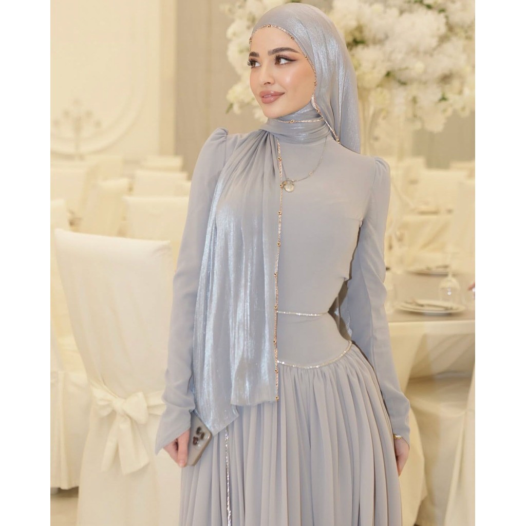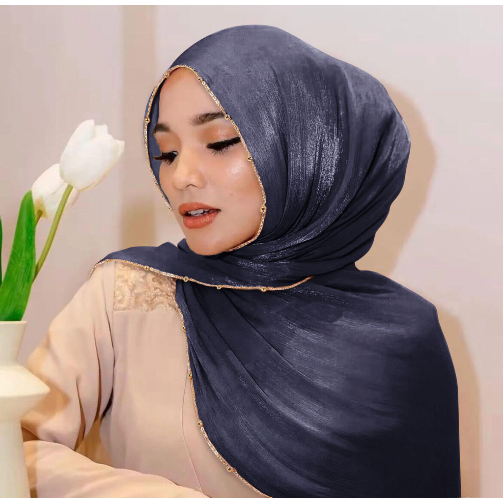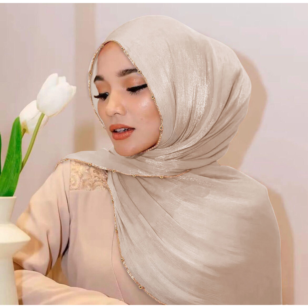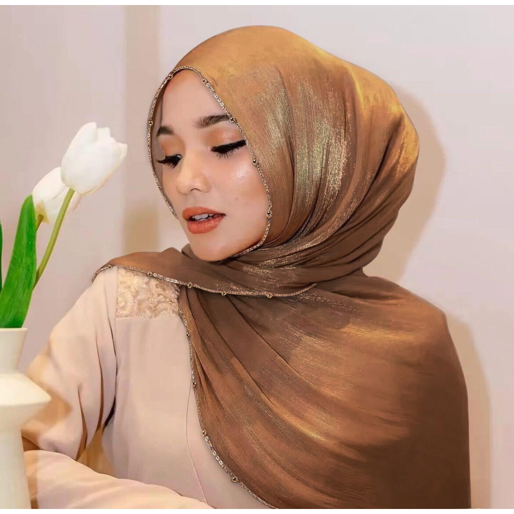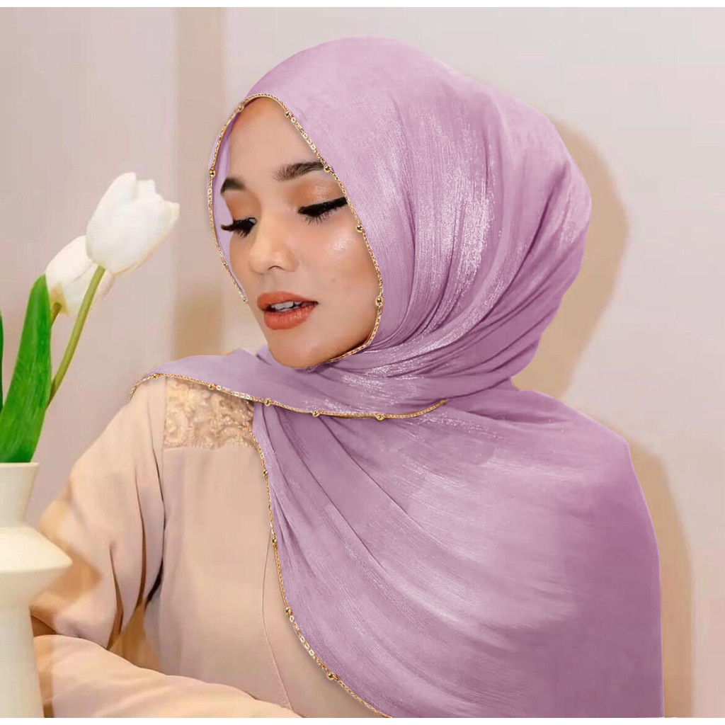 Metal Bead Chain Shimmer Silk Shawl Luxury scarfs Muslim Fashion Hijab Headwraps For Muslim Women Head Wrap Islamic Women Veil