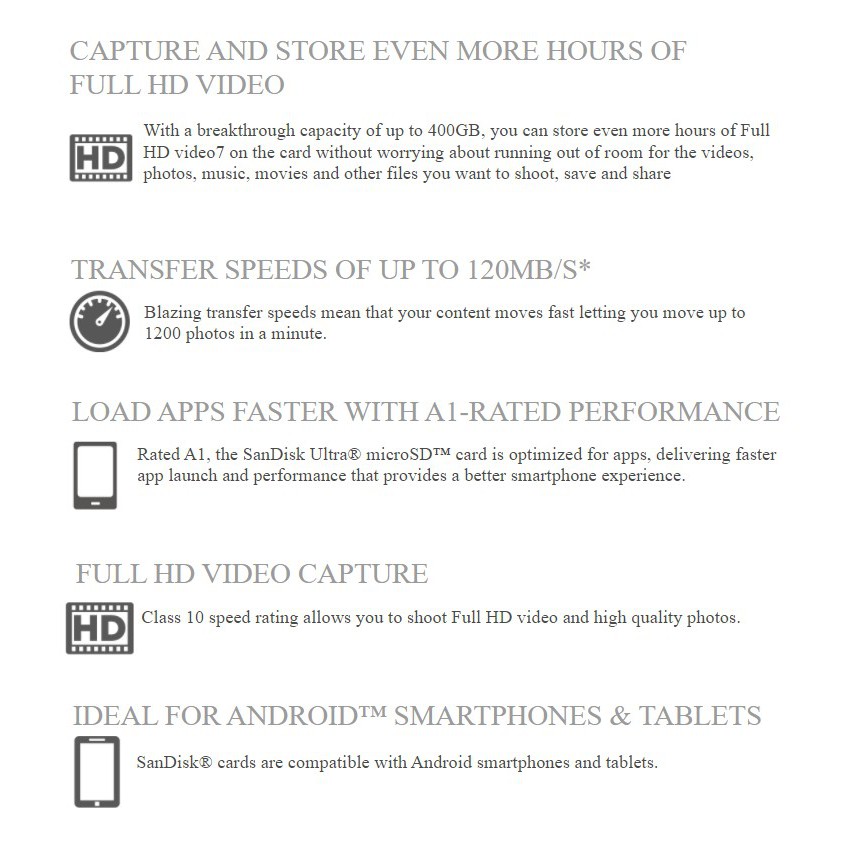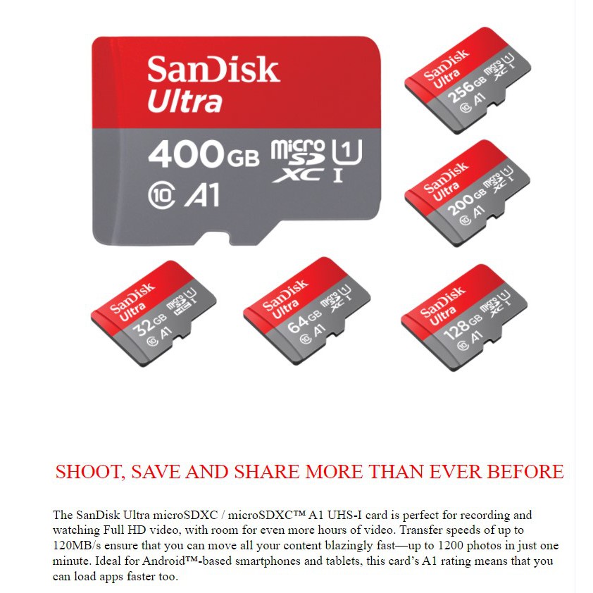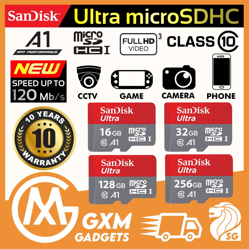 Sandisk A1 Ultra microSDHC UHS-I U1 Micro SD Card 16GB 32GB 64GB 128GB 256GB Camera Mobile Phone