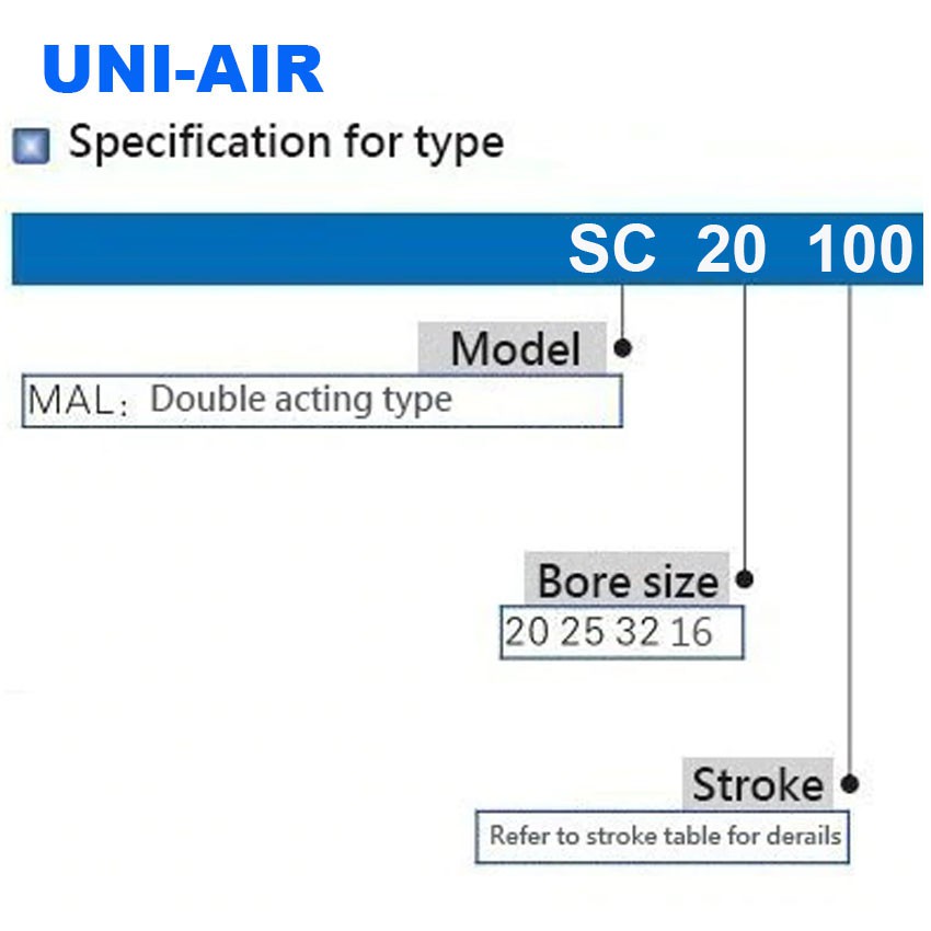 Uni-Air SC Series Pneumatic Cylinder Bore (32 to 40 mm) x (25 to 400 mm) Stroke Travel