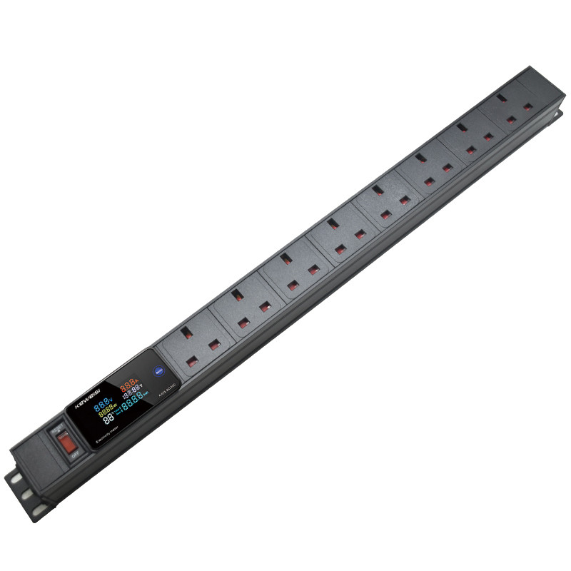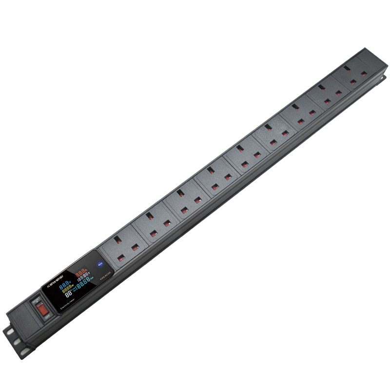 C14 input PDU power strip, 2-13Ways UK socket distribution unit,with switch, digital display meter,Cabinet Rack Mount