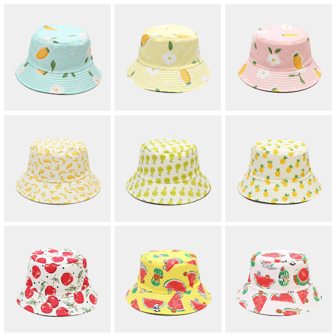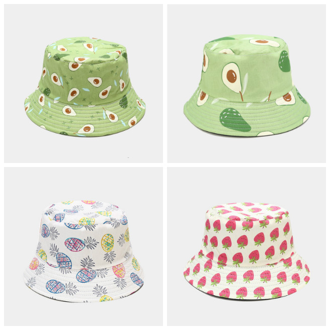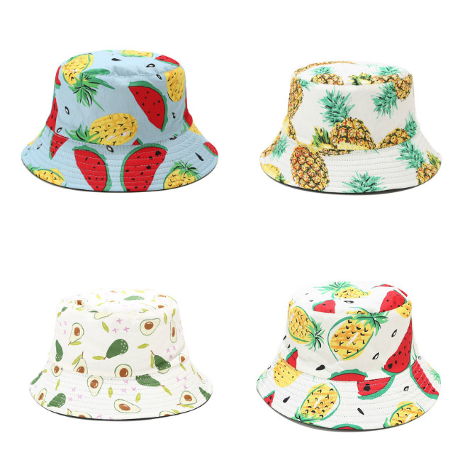 Double-sided Tropical fruit pattern fisherman hat female outdoor sports sunshade hats leisure sunhat