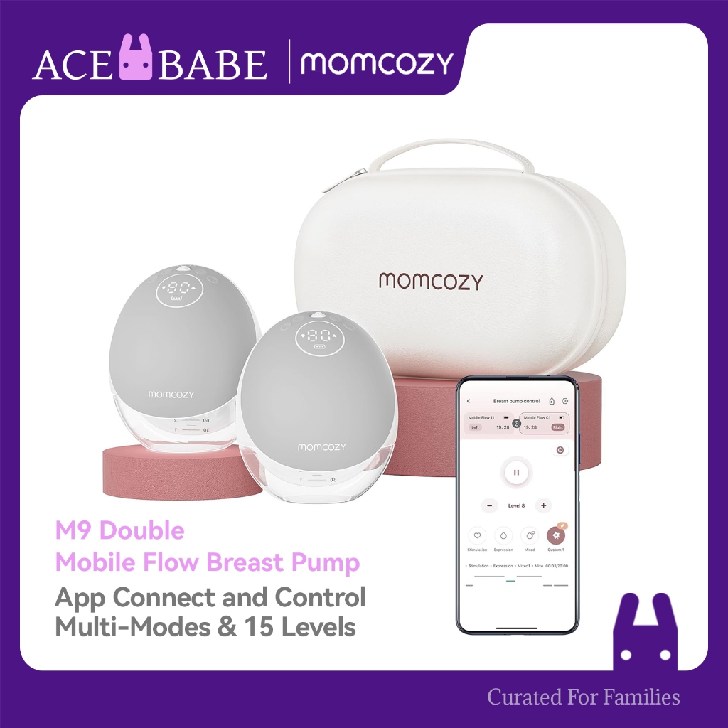 Momcozy M9 Double Wearable Breast Pump Mobile Flow App Control with Personalized, Multi-Modes & 15 Levels - 24mm, 2 Pack
