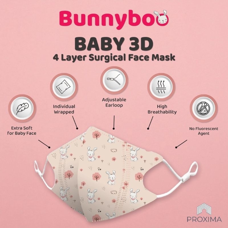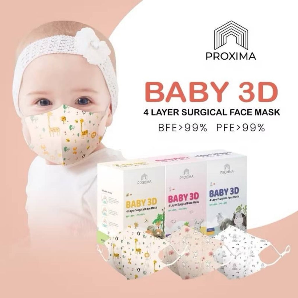 Proxima 4Ply [无鼻梁款] Baby 3D Medical Face Mask 3D Kids Mask Without Nose String (20pcs/Box) For Baby Mask - 儿童医用无鼻梁口罩