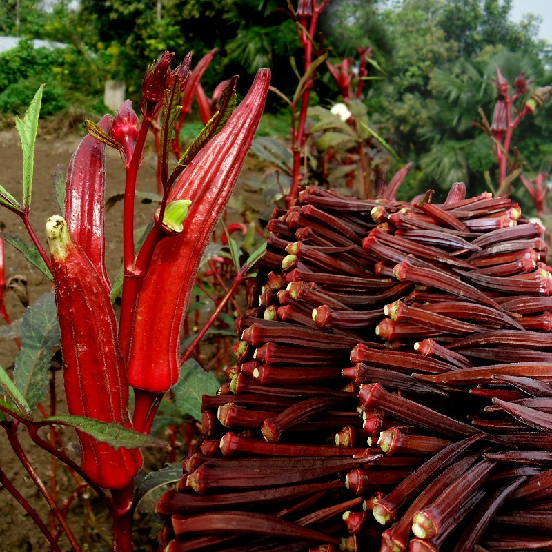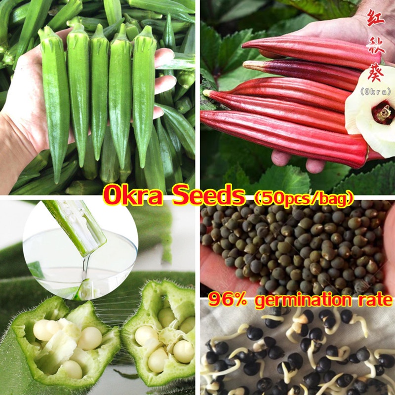 100% Authentic Red Green Okra Seeds for Planting (50 Seeds/Pack) Bendi Rendah 红绿秋葵种子 Merah Organic Vegetable Seeds