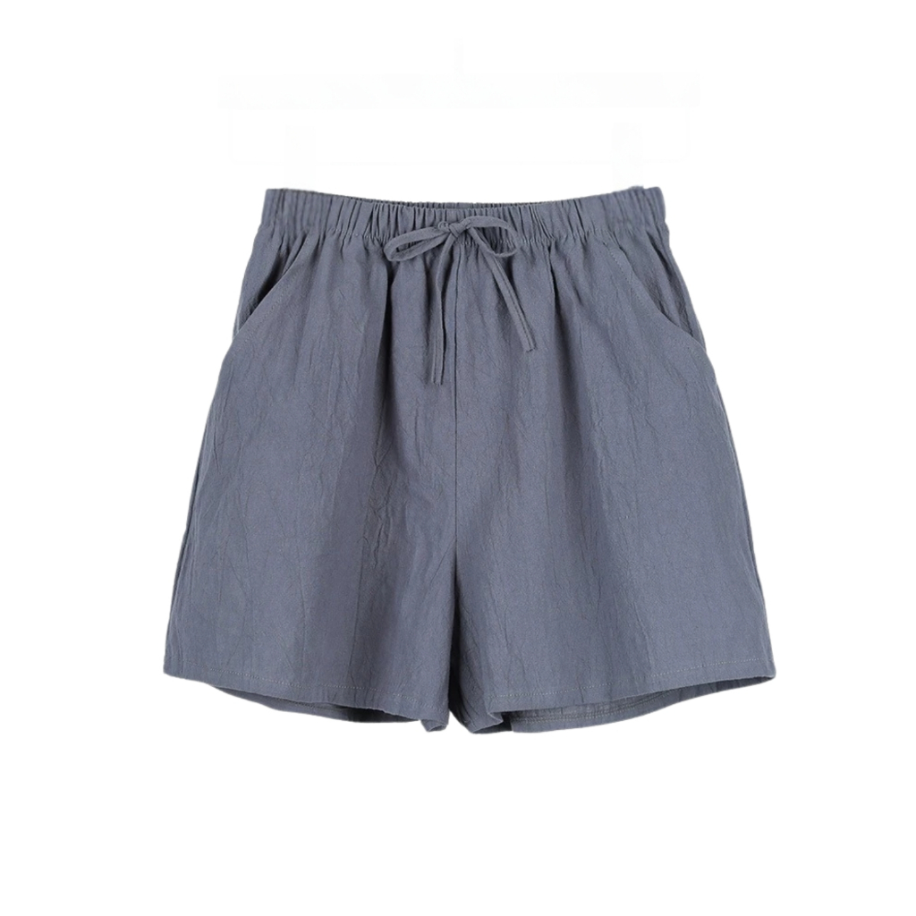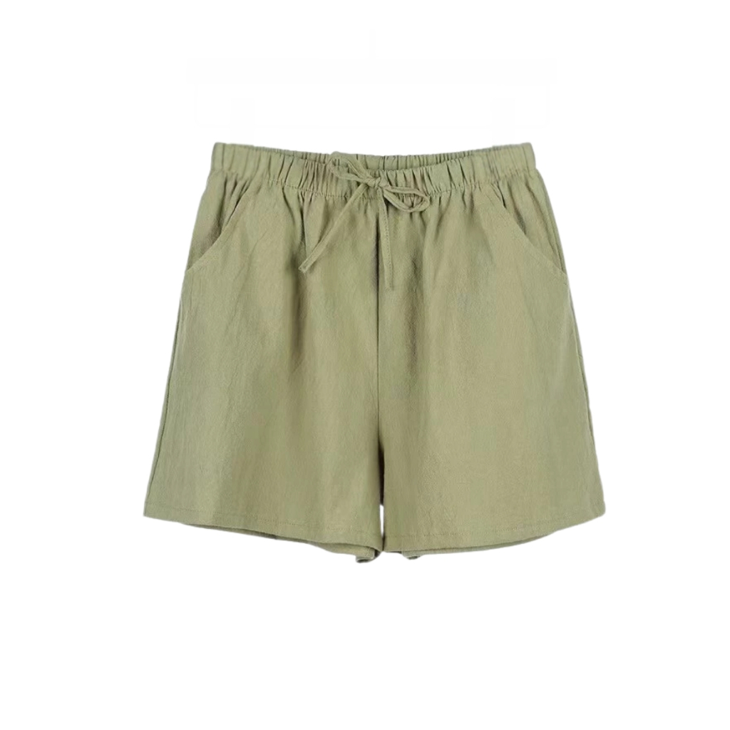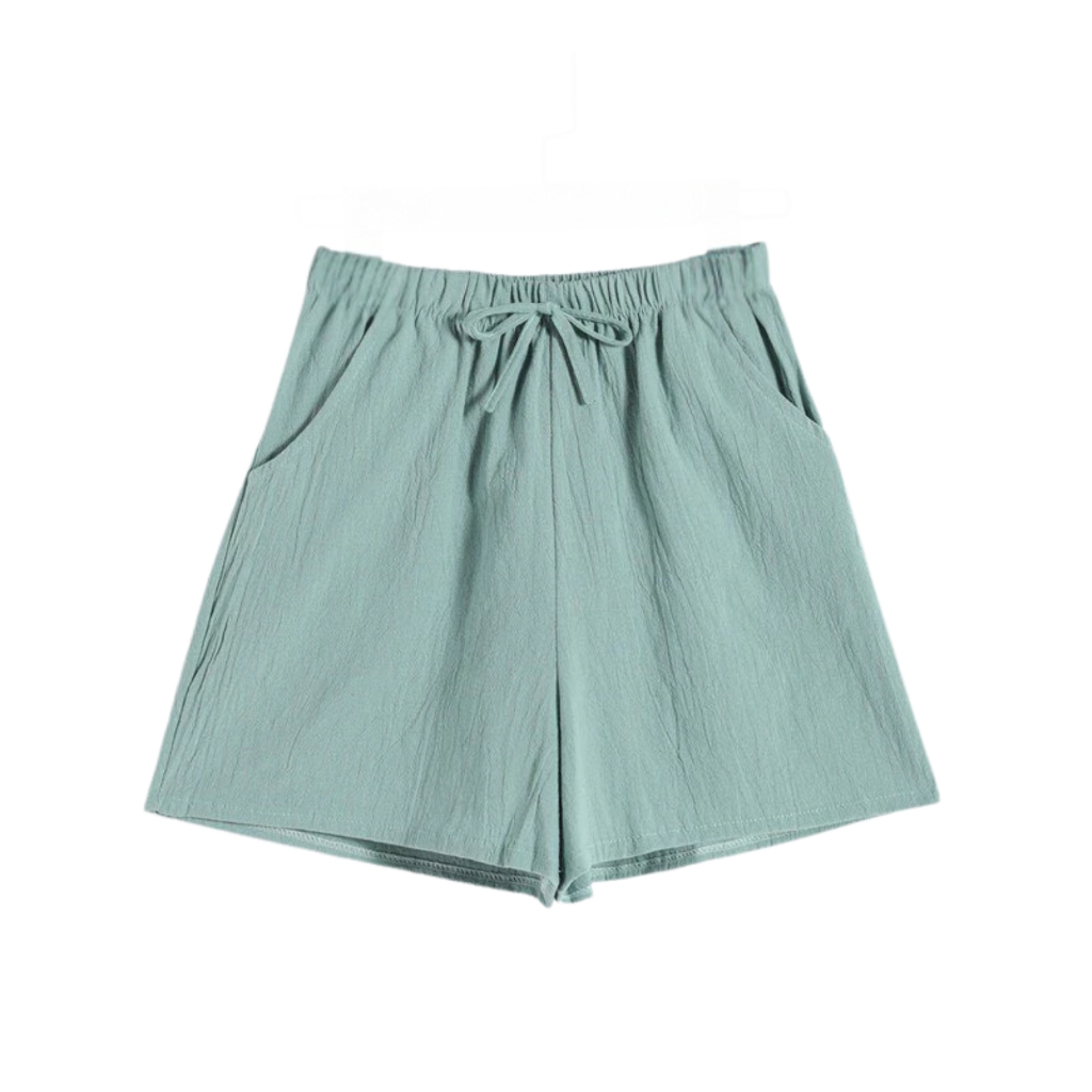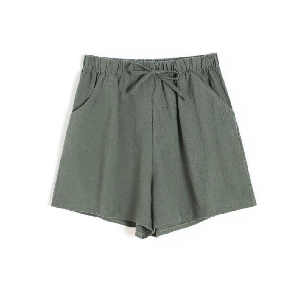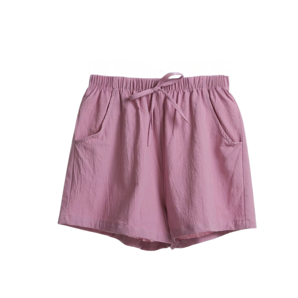 Women’s Casual Summer Shorts - Elastic Waist, Cotton Linen, Pockets, Tie Front Design