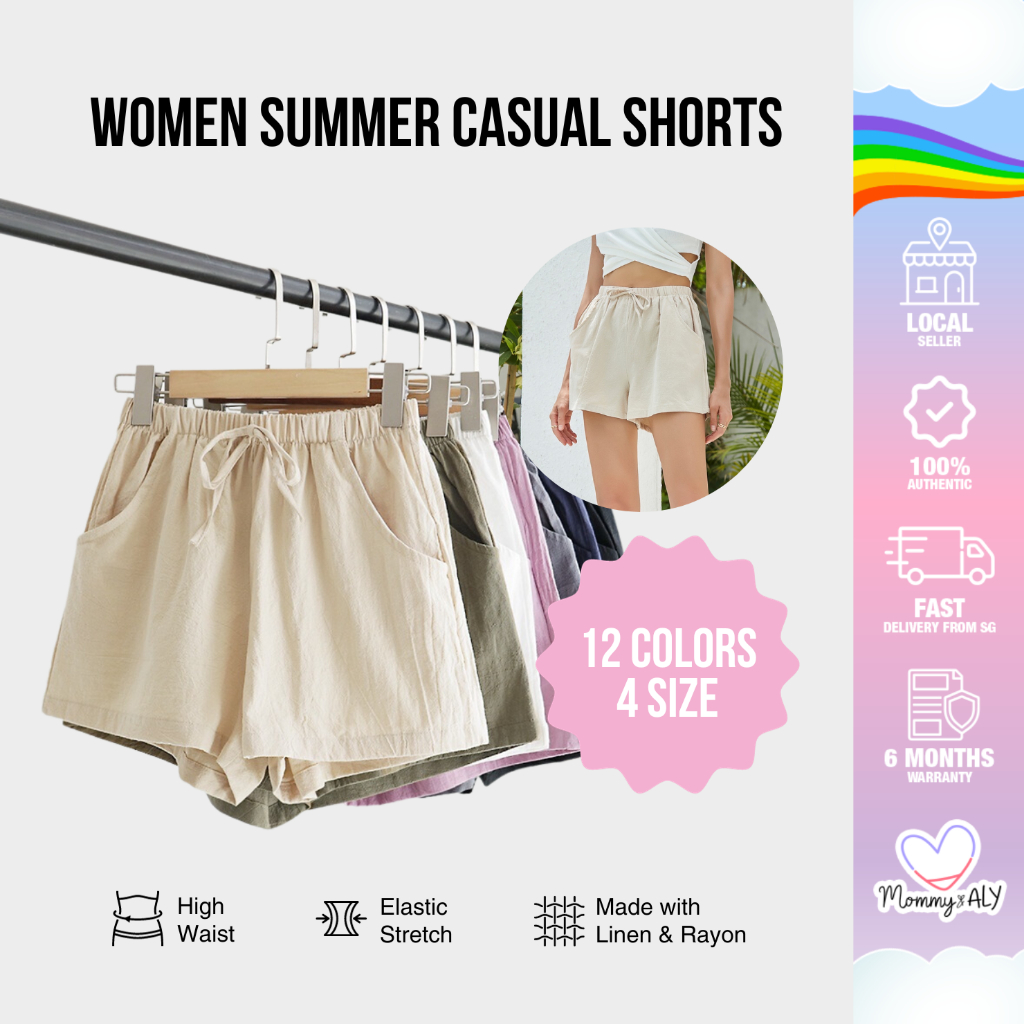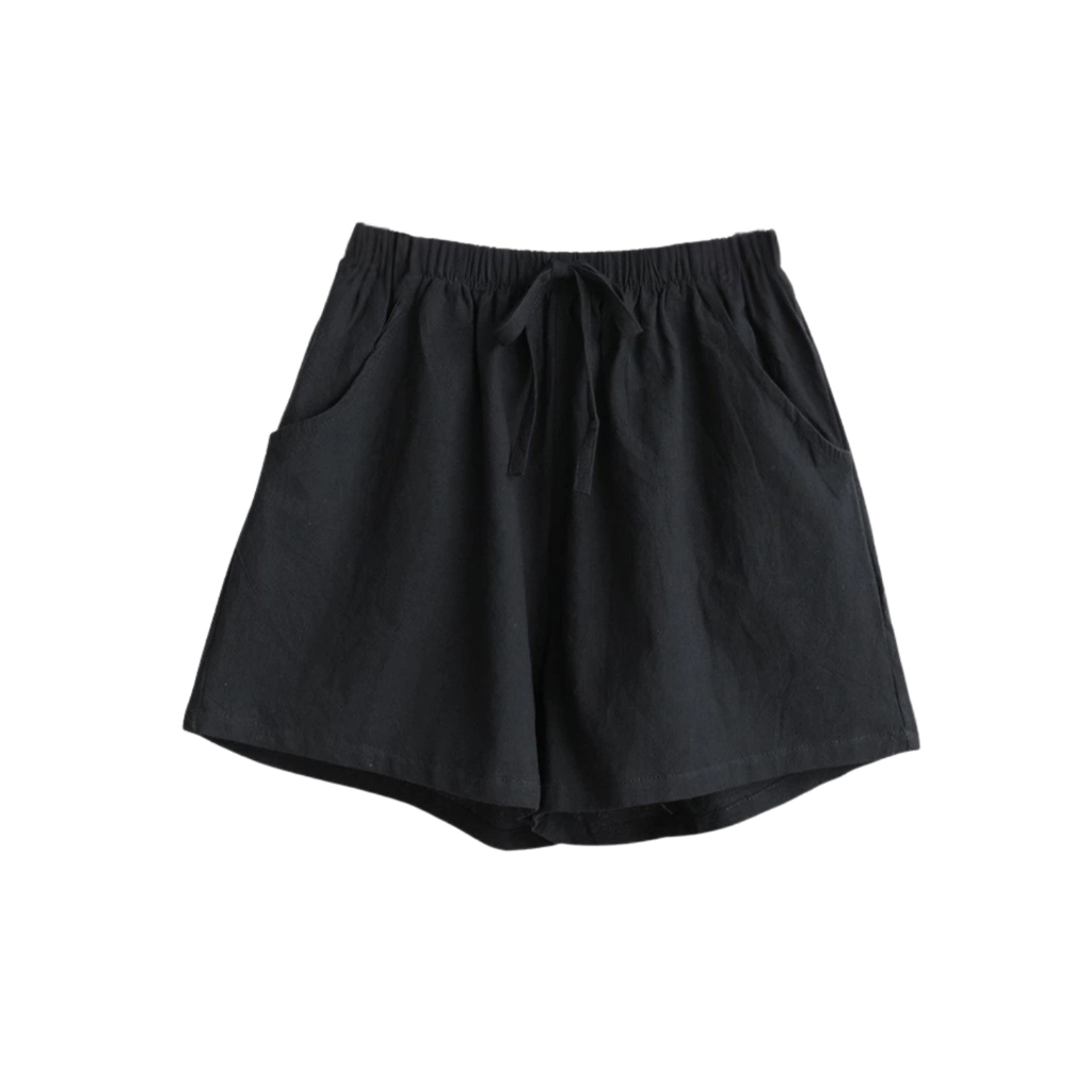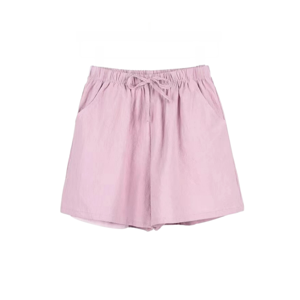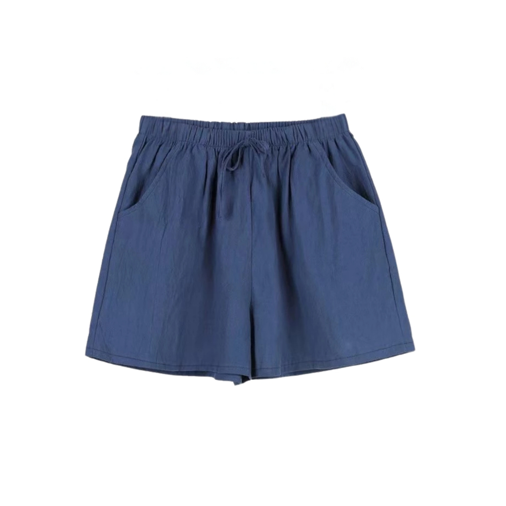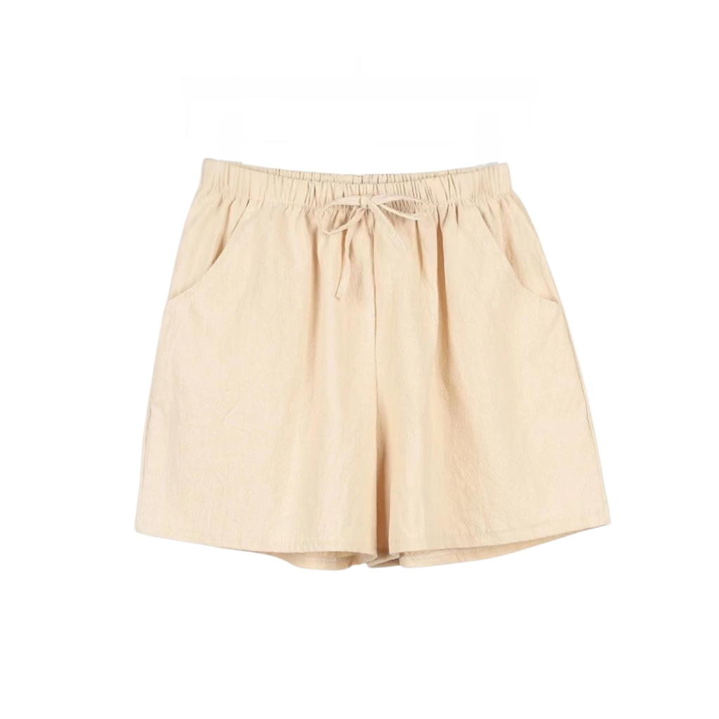Women’s Casual Summer Shorts - Elastic Waist, Cotton Linen, Pockets, Tie Front Design