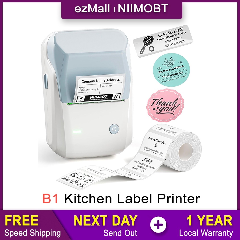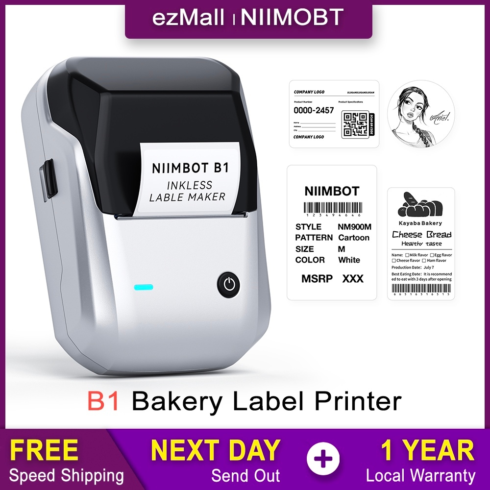 NIIMBOT Label Printer B1 20-50mm, Portable Bluetooth Thermal Sticker Price Tag Labelling Machine