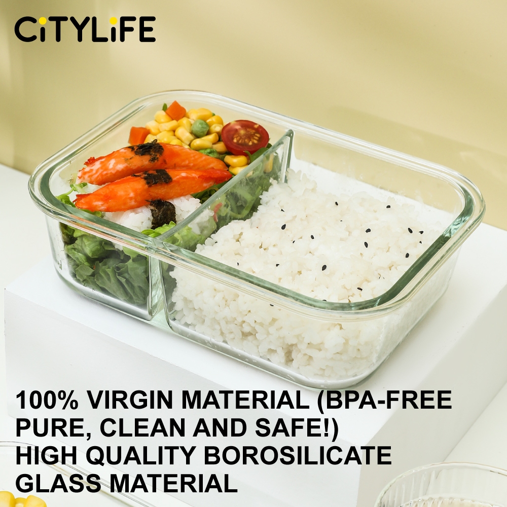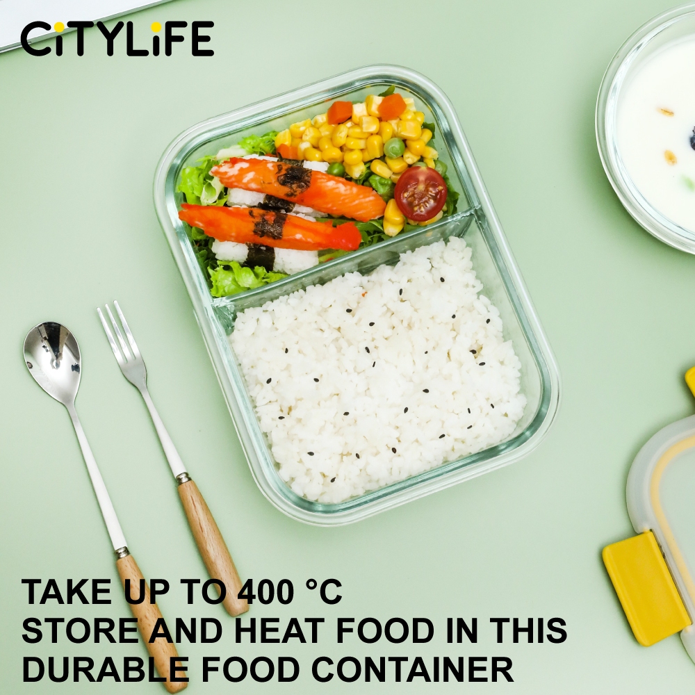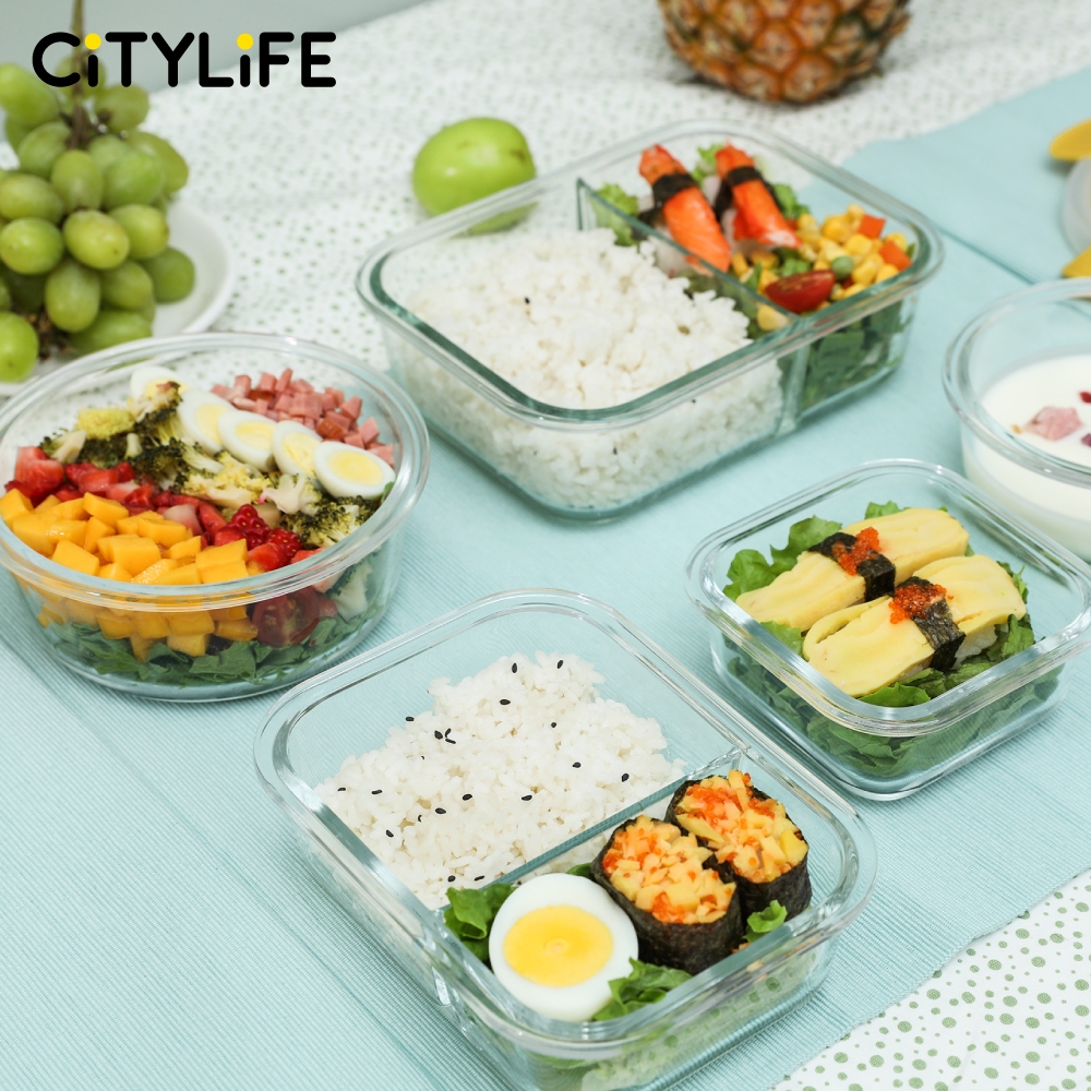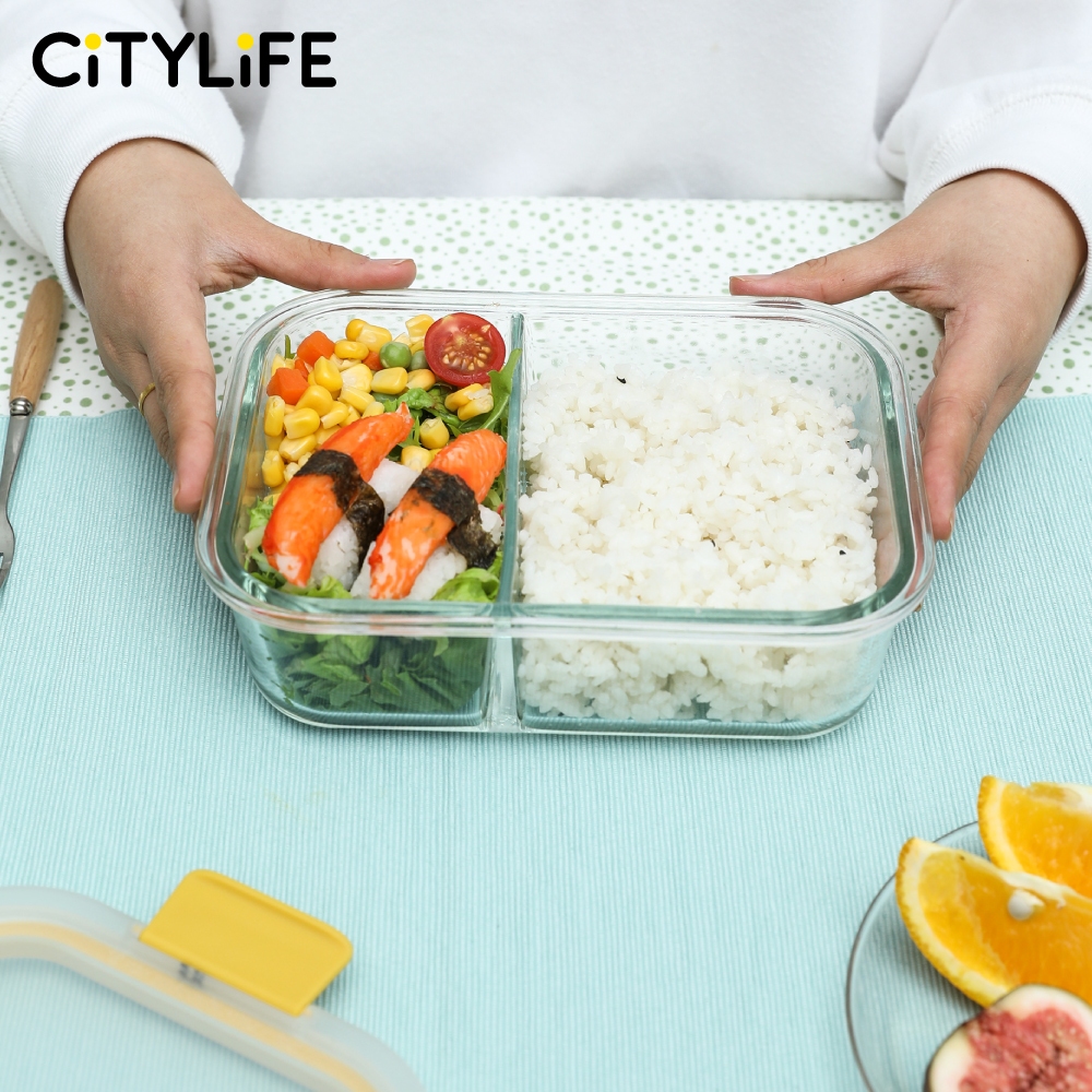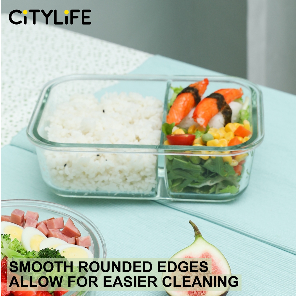 Citylife Glass Food Container Air-tight Glass Lunch Box Microwaveable BPA Free Bento Box Fridge Container (W/ DIVIDER)