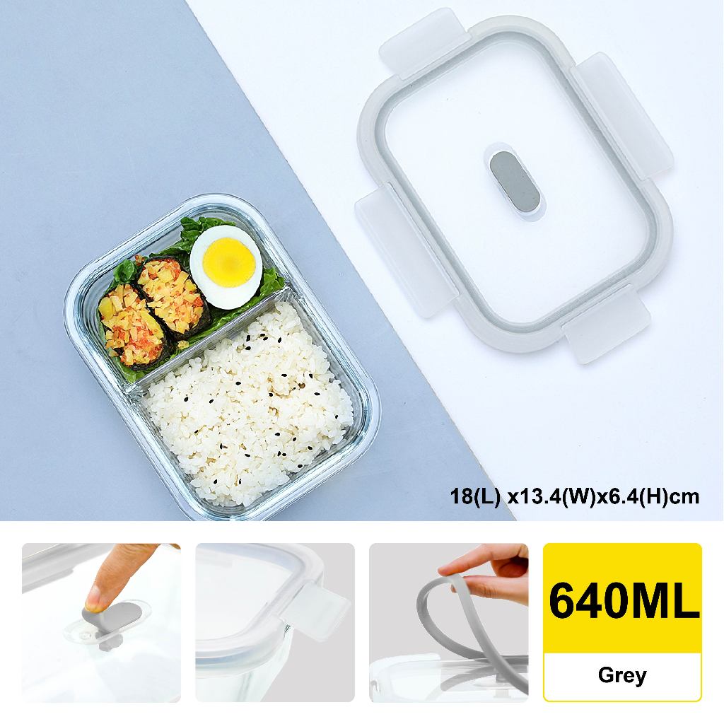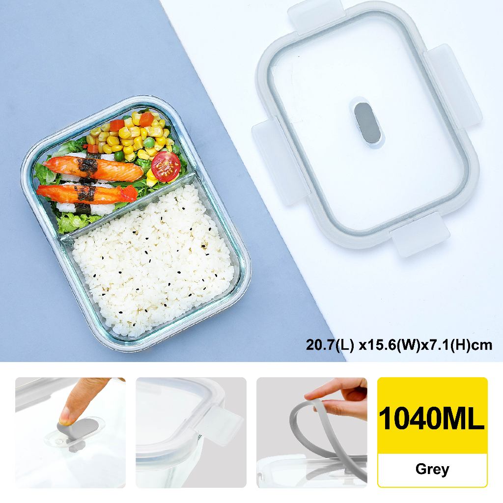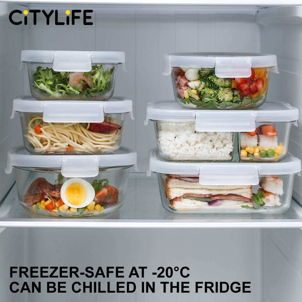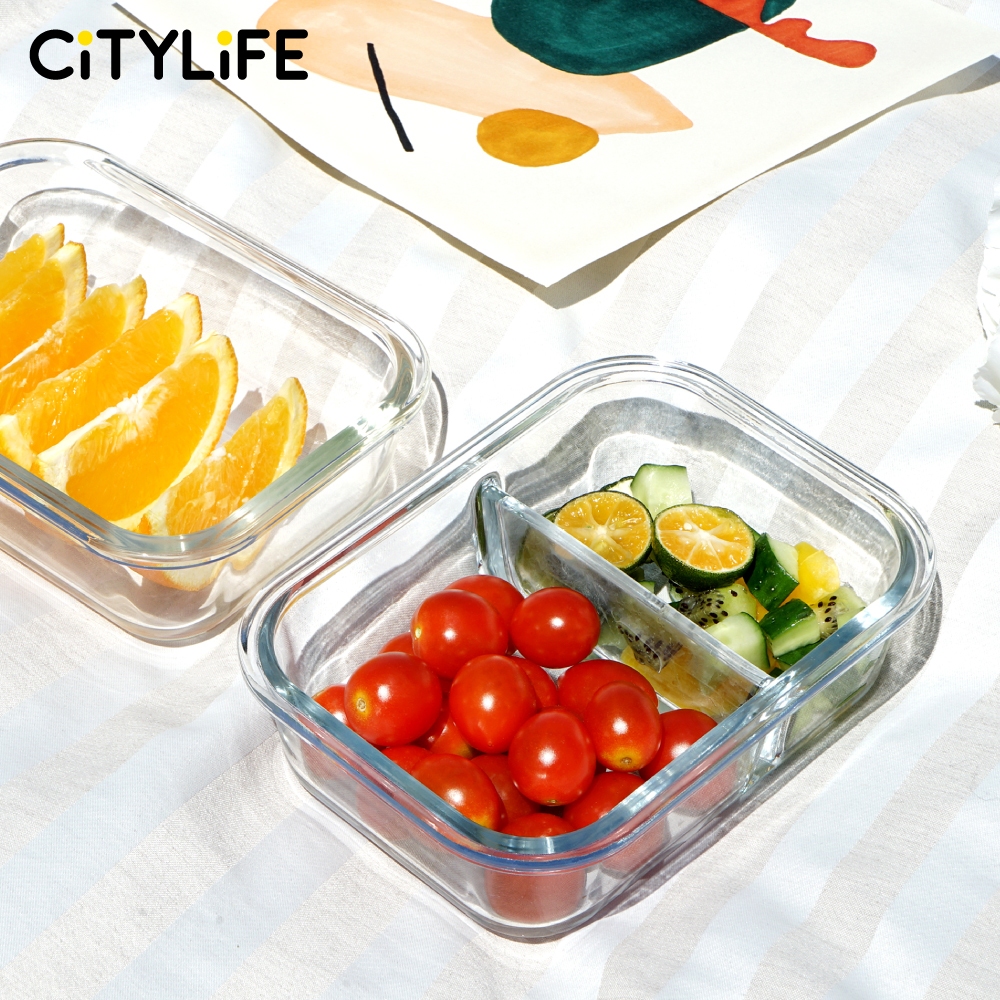 Citylife Glass Food Container Air-tight Glass Lunch Box Microwaveable BPA Free Bento Box Fridge Container (W/ DIVIDER)