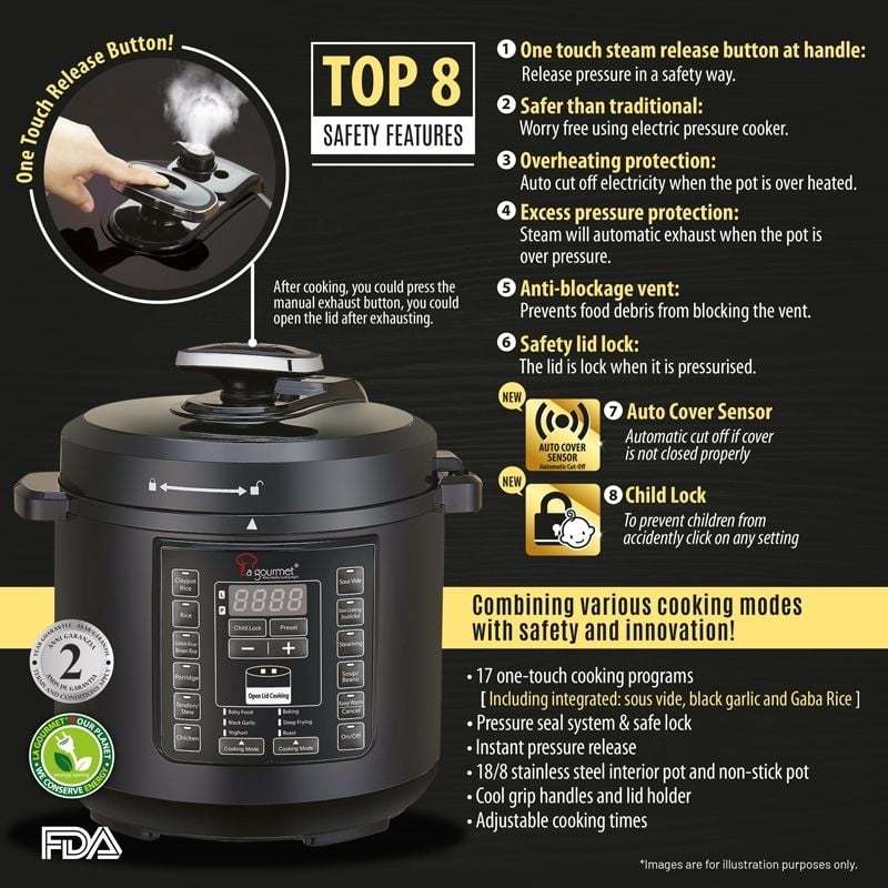 La Gourmet Healthy Electric Pressure Cooker 6L with Full Accessories Set + 5kg Rice Dispenser