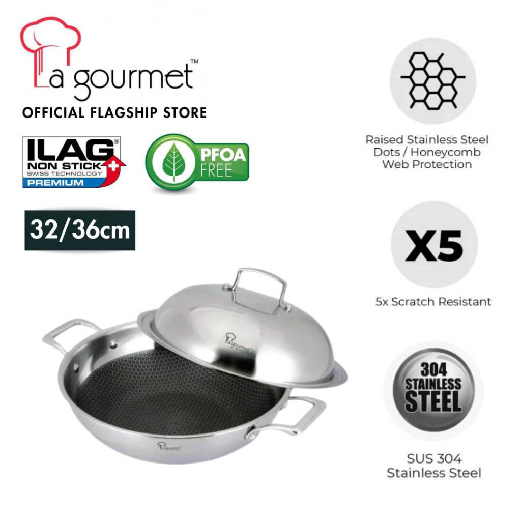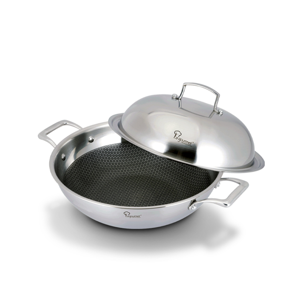 La gourmet Galactic Honeycomb 32/36cm Wok with Stainless Steel Cover (Induction)