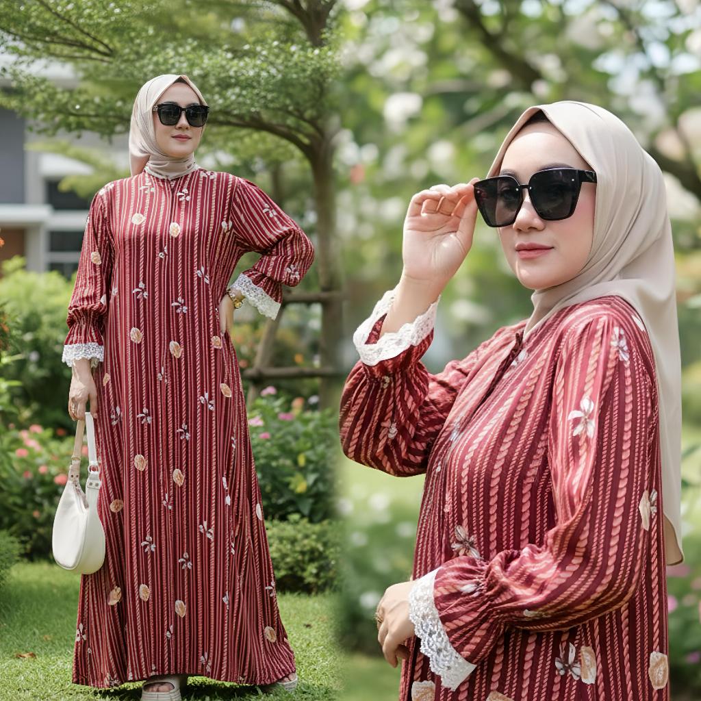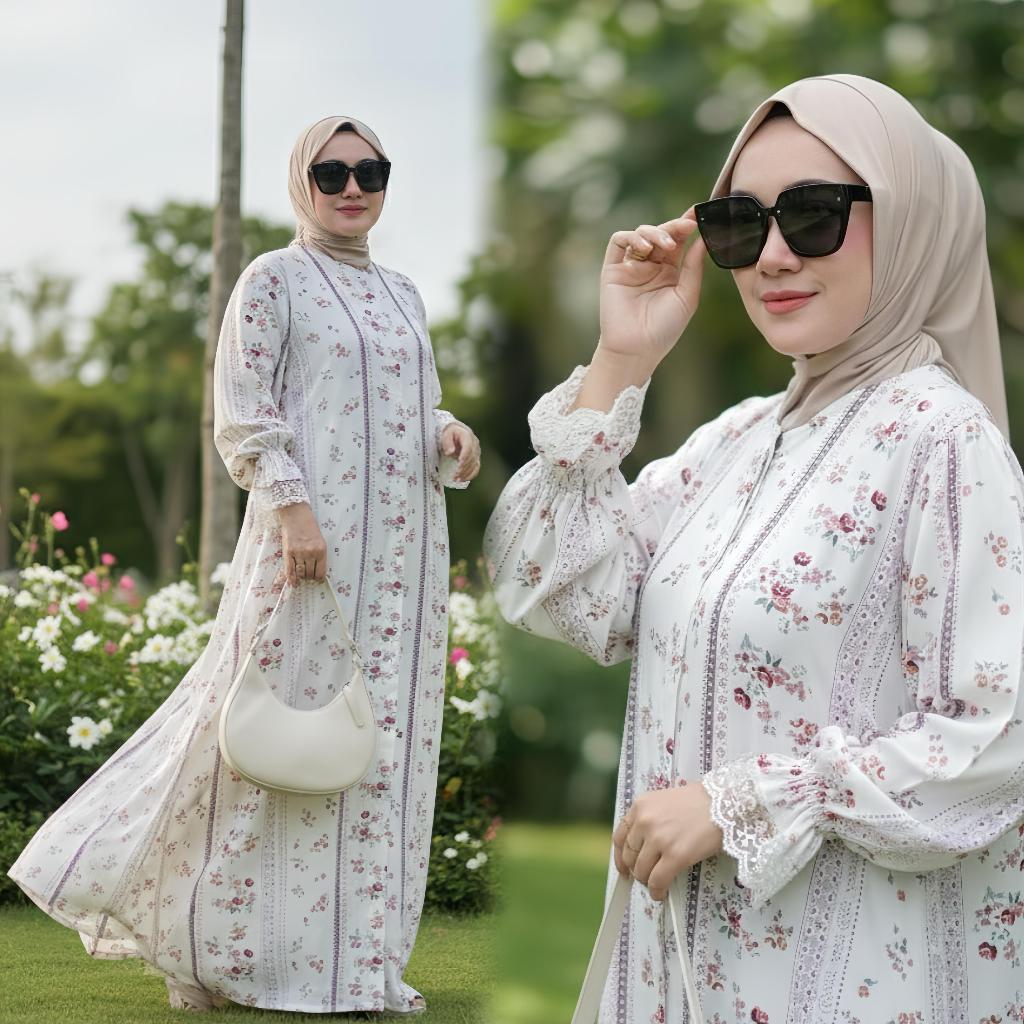 [Fibas] Syahnaz Dress Gamis Raya Series Premium Rayon Material Elegant Comfortable for Eid and Formal Events with Beautiful Floral Design Eid Outfit Muslimah Dress
