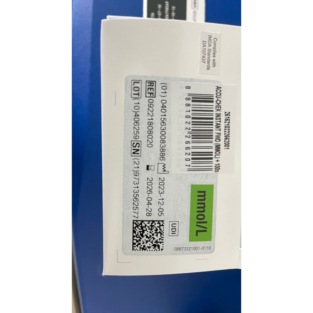 [🇸🇬Stock] Accu Chek Instant Glucose Meter Set (Inclued 100s Test Strips)
