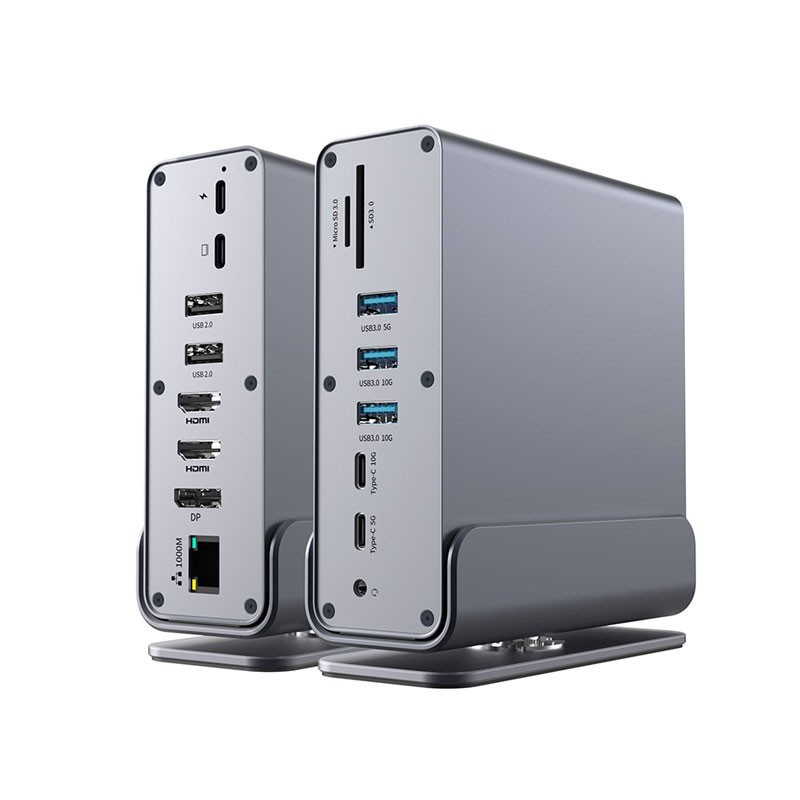 15in1 USB-C Docking Station USB 3.0 Dual HDMI 4K HDTV DisplayPort 7 USB 100W PD 3.5mm Audio SD TF 1000Mbps Type-C Hub for Laptop PC Macos