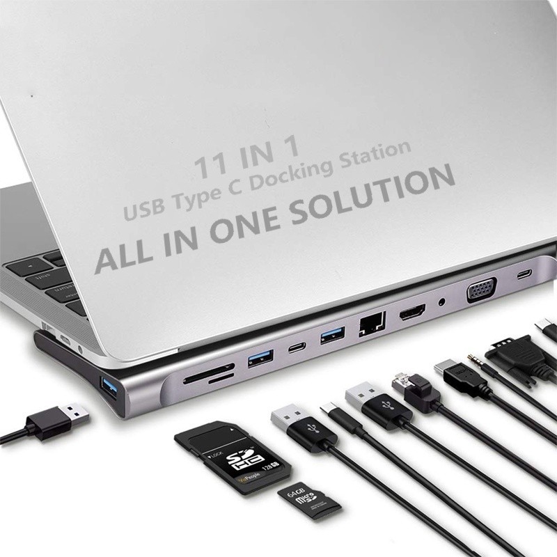 USB C Laptop Docking Station To HDMI VGA USB PD Charge LAN RJ45 3.5MM Jack SD TF Reader Type C Hub Adapter for Laptop PC Dock