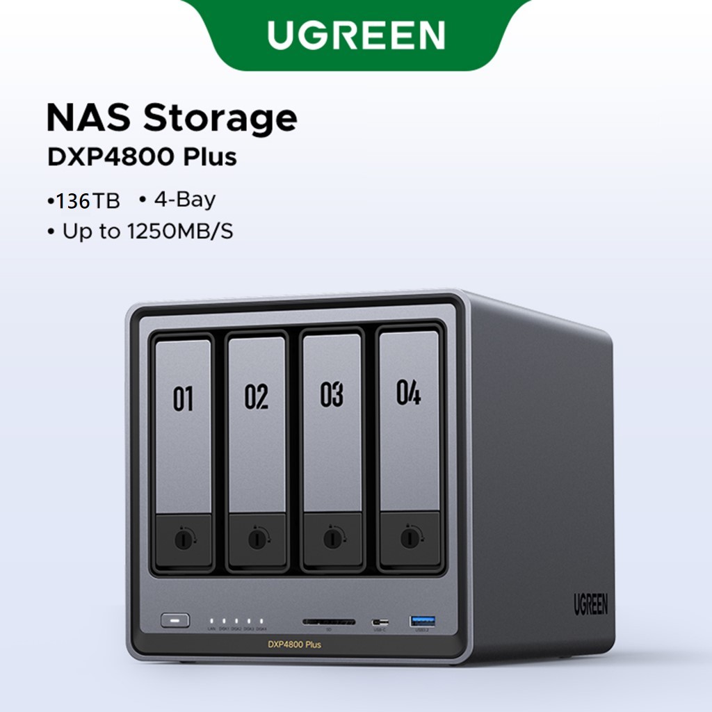 UGREEN NASync DXP4800 Plus 4-Bay Desktop NAS, Intel Pentium Gold 8505 5-Core CPU, 8GB DDR5 RAM, 128G SSD, 1 * 10GbE, 1 * 2.5GbE, Network Attached Storage (Diskless)
