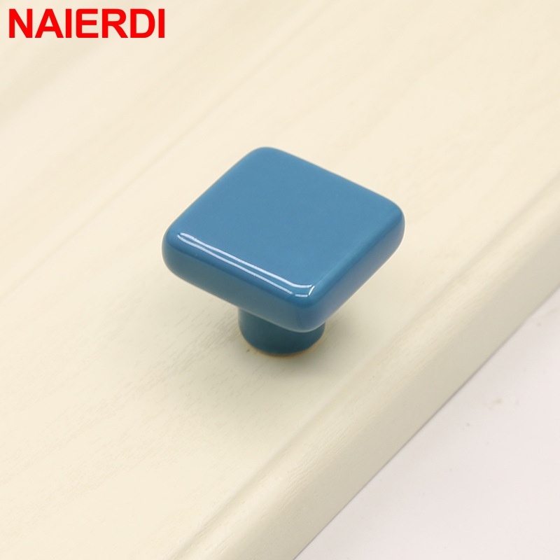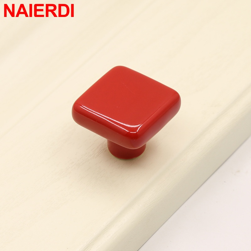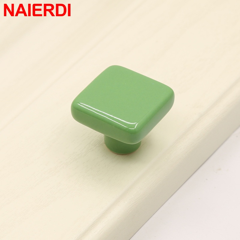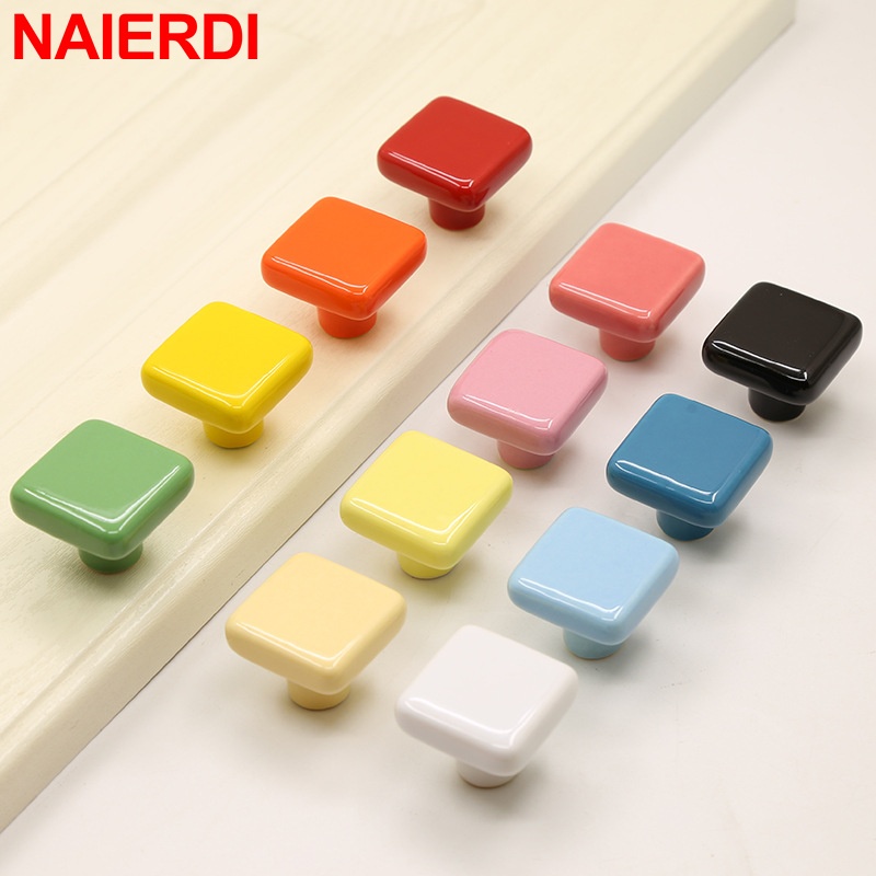 NAIERDI Colorful Ceramic Cabinet Knobs and Handles 32mm Square Drawer Knobs for Kids Room Furniture Handle